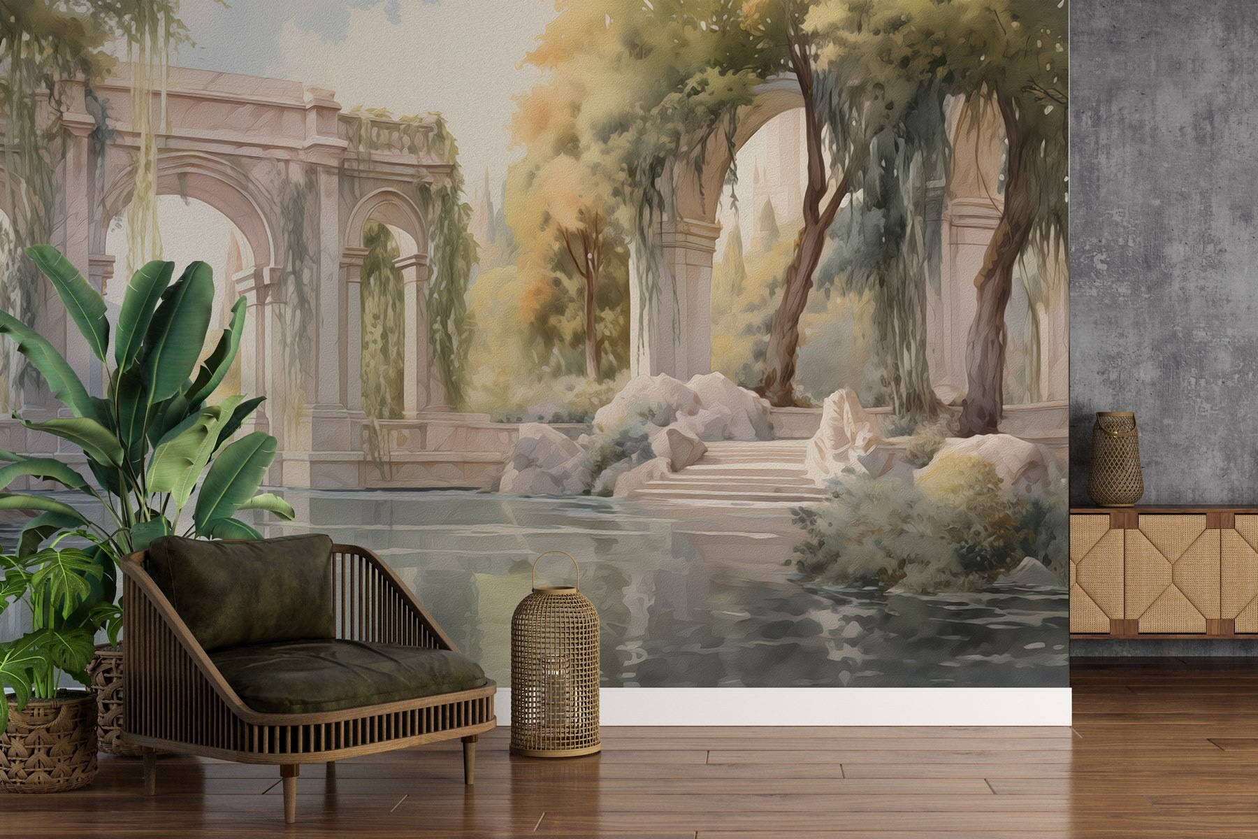 Wkrocz do wymarzonej ucieczki dzięki tej czarującej fototapecie „Woda z drzewami i łukami”. Wyobraź sobie: bujna zieleń otaczająca spokojne wody pod ponadczasowymi łukami, szepcząca sekrety natury i spokoju. To jak wprowadzenie spokojnego ogrodu do swojego salonu – kto by tego nie chciał? Ta fototapeta to nie tylko ładny wygląd, ale także dodaje głębi i wprowadza spokojną atmosferę, sprawiając, że każda przestrzeń staje się nieco bardziej przytulnym miejscem. Wyobraź sobie, że popijasz herbatę, wpatrując się w nią, pogrążony w myślach, z odrobiną magii natury w swoim domu. Idealna dla tych, którzy pragną odrobiny fantazji i ciepła!