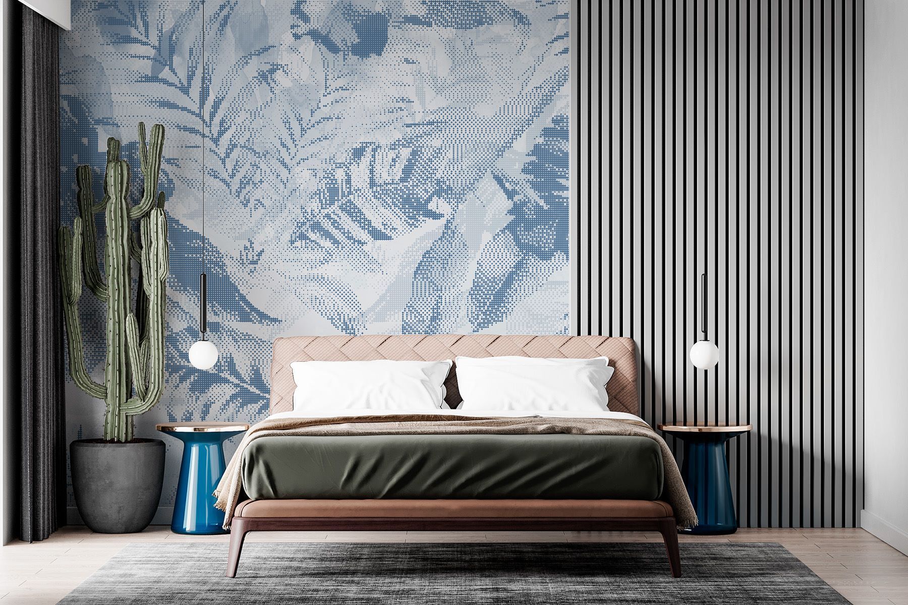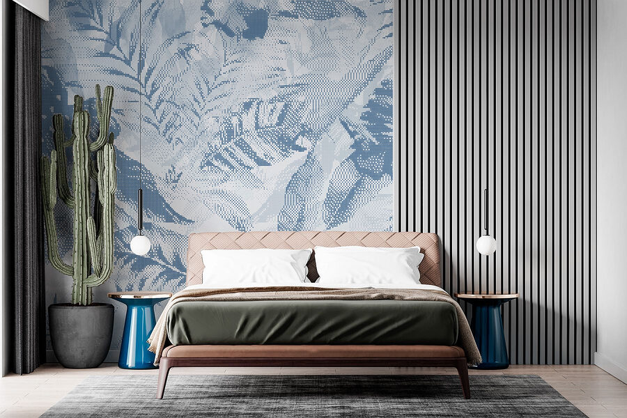 Transform any space into a serene oasis with this delicate blue foliage mural. It’s like bringing a gentle breeze indoors—minus the pollen! The soft blues and lush patterns dance across the wall, creating a calm and soothing atmosphere. Imagine sipping your morning coffee, gazing at those graceful leaves, and feeling like you’re lounging in a botanical garden. Perfect for a cozy reading nook or a stylish living room, this mural adds a touch of nature without the upkeep. Who needs a green thumb when you’ve got this beauty on your wall?