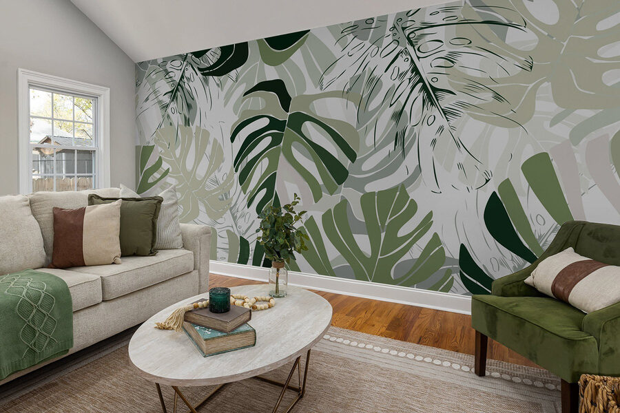 Przekształć zwykłą ścianę w tętniącą życiem przestrzeń dzięki tej pięknej fototapecie z motywem liści. Wyobraź to sobie: słońce wpadające przez okno, bujne zielone liście tańczące na białym tle. To jak wewnętrzna dżungla bez uciążliwych owadów! Ten wzór dodaje orzeźwiającej atmosfery do każdego pomieszczenia – idealny do przytulnego kącika do czytania lub rozjaśnienia nudnego korytarza. Wyobraź sobie, że popijasz kawę w otoczeniu tych wesołych liści, czując się trochę jak na tropikalnej wycieczce. Jest zachęcający, świeży i emanuje urokiem natury. Przygotuj się na tchnięcie życia w swoją przestrzeń!
