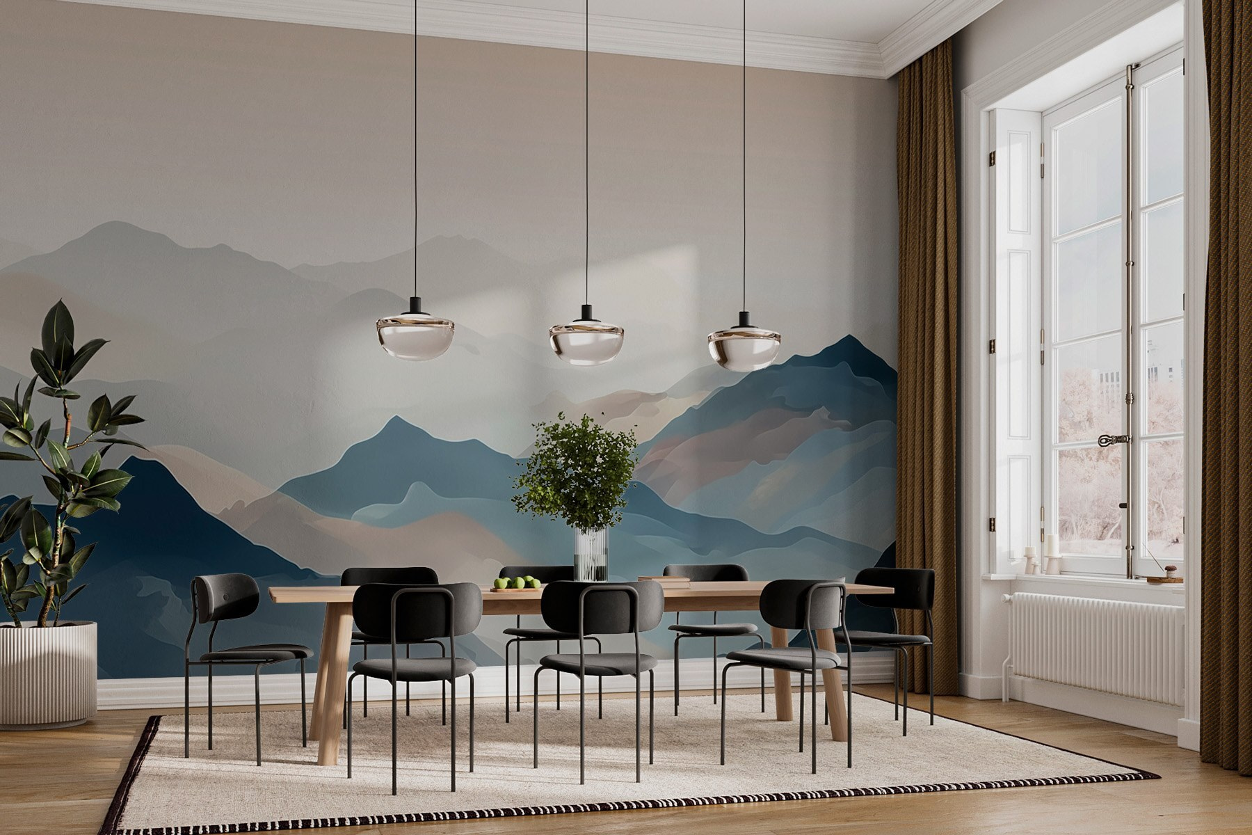 Wyobraź sobie, że budzisz się w przytulnej chatce, słońce prześwituje przez drzewa, a Ty masz wrażenie, że góry ożywają na Twoich oczach. Ta fototapeta „Pasmo górskie we mgle” doskonale oddaje tę wymarzoną atmosferę. Delikatne pociągnięcia pędzlem akwarelowym łączą odcienie błękitu i ziemistych barw, tworząc atmosferę spokoju i ciszy. To jak delikatny uścisk dla Twoich ścian. Wyobraź sobie ten obraz w kąciku do czytania — zwinięty w kłębek z dobrą książką i ciepłym napojem, całkowicie zanurzony w spokojnym widoku. Sprawi, że poczujesz się jak w niekończącej się przygodzie, nawet gdy odpoczywasz w domu. Nie potrzebujesz sprzętu wspinaczkowego!