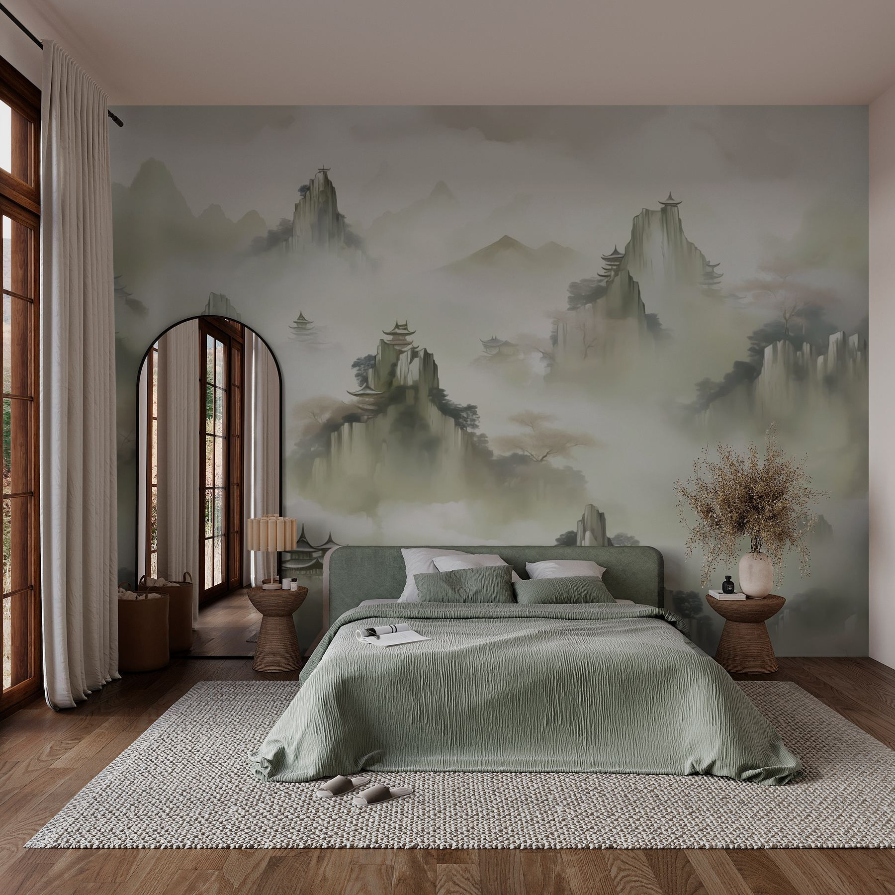 Zmień każde pomieszczenie w spokojną przystań dzięki tej wspaniałej fototapecie przedstawiającej wymarzony krajobraz. Wyobraź sobie: zamglone góry wznoszą się wdzięcznie w tle, a delikatne drzewa kołyszą się delikatnie na wietrze. To arcydzieło wykonane techniką akwareli to nie tylko dekoracja — to zaproszenie do relaksu i puścić wodze fantazji. Delikatne odcienie tworzą uspokajającą atmosferę, która sprawia, że czujesz się jakbyś popijał herbatę w spokojnym górskim schronisku — bez konieczności zakładania butów turystycznych! Niezależnie od tego, czy znajduje się w przytulnym salonie, czy w spokojnej sypialni, ta fototapeta szepcze: „Zrelaksuj się, jesteś w domu”. Idealna dla tych, którzy kochają artystyczny akcent w swojej przestrzeni.