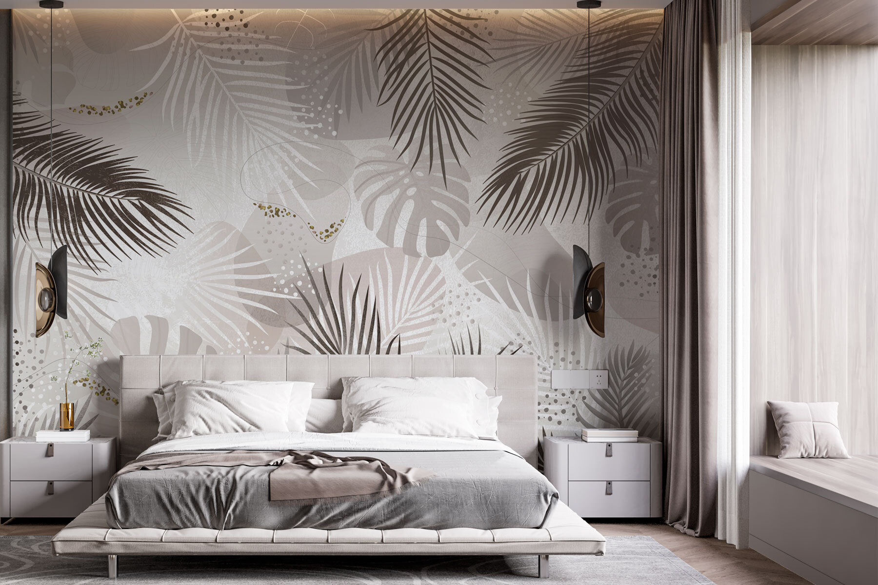 Przekształć swoją przestrzeń w tropikalną oazę dzięki tej fototapecie ściennej z eleganckimi liśćmi w neutralnych odcieniach. Wyobraź sobie spokojną ucieczkę za każdym razem, gdy wchodzisz do pokoju – gdzie delikatne zielenie i ziemiste brązy tworzą kojące tło. Ten projekt to nie tylko wygląd; przywołuje on uczucie spokoju natury, szepcząc historie o rozświetlonych słońcem dżunglach i wietrznych popołudniach. Wyobraź sobie goszczenie przyjaciół z drinkami w ręku, podczas gdy oni podziwiają bujną scenerię, być może nawet zatracając się w rozmowie o ostatnich wakacjach w raju. Ta fototapeta wniesie powiew świeżego powietrza do każdej przestrzeni, sprawiając, że poczuje się ona żywa i szykowna bez wysiłku.