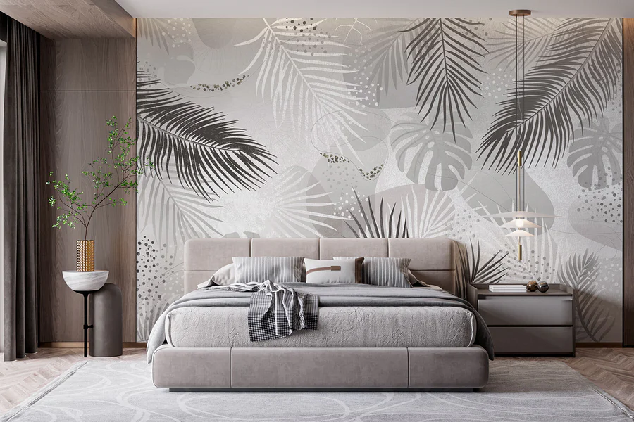 Zmień wygląd każdego pomieszczenia dzięki tej oszałamiającej fototapecie, przedstawiającej eleganckie szaro-białe tło ozdobione eleganckimi liśćmi. To tak, jakbyś wprowadził do swojego domu powiew tropików, ale bez wilgoci! Wyobraź sobie, że wchodzisz do swojego salonu i czujesz, jak ogarnia Cię spokój natury. Zabawna gra odcieni może wzbudzić zazdrość o styl, zwłaszcza podczas spotkań towarzyskich — wszyscy będą pytać, gdzie ją znalazłeś. Ta fototapeta nie tylko dekoruje, ale także tworzy atmosferę, zmieniając nudne ściany w wyrazisty element wystroju. Idealna dla każdego, kto chce dodać odrobinę nowoczesnego stylu, zachowując jednocześnie spokój i wyrafinowanie. Kto by pomyślał, że ściana może być tak zachęcająca?