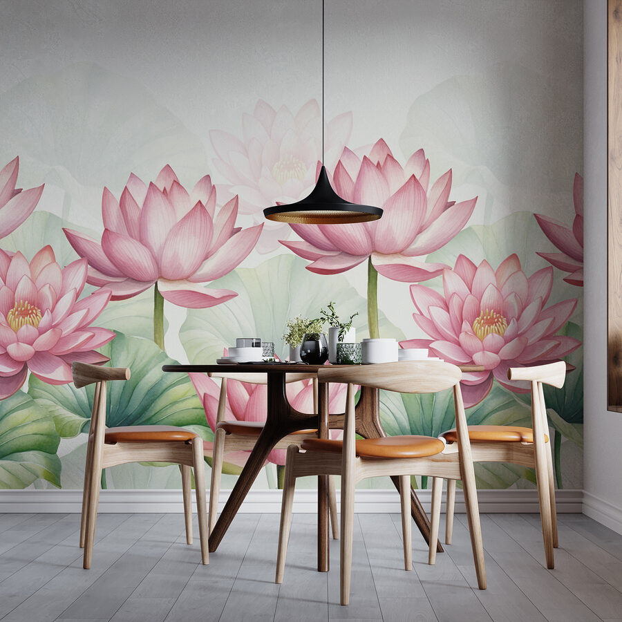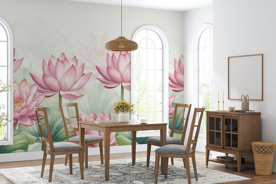 Odmień każdą przestrzeń dzięki tej czarującej fototapecie z różowymi kwiatami na tle miękkich zielonych liści. To jak posiadanie ogrodu w domu, bez konewki i uciążliwych pszczół. Wyobraź sobie: przytulny salon, w którym te żywe kwiaty zajmują centralne miejsce, wywołując radość i zachęcając wszystkich do komplementów. Efekt akwareli wnosi delikatny akcent, tworząc pogodną atmosferę, która przypomina senną ucieczkę. Idealny do sypialni lub wesołego zakątka – odrobina uroku, która szepcze “zrelaksuj się i ciesz się” za każdym razem, gdy spojrzysz w jego stronę.