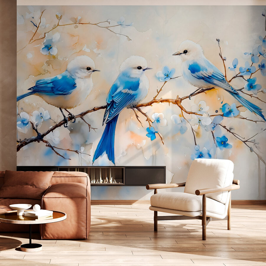 Rozjaśnij każde pomieszczenie dzięki tej uroczej fototapecie przedstawiającej urocze trio niebieskich ptaszków siedzących na delikatnie kwitnącej gałęzi. To tak, jakbyś zaprosił naturę do swojego wnętrza, nie ryzykując, że śpiew ptaków obudzi Cię o świcie! Efekt akwareli dodaje marzycielskiego klimatu, idealnego do stworzenia spokojnej atmosfery. Wyobraź sobie, że popijasz herbatę lub kawę w przytulnym kąciku, słuchając śpiewu tych pierzastych przyjaciół. Użyj go w pokoju dziecięcym, salonie, a nawet w miejscu pracy, aby pobudzić kreatywność. Niebieskie kolory i delikatne kwiaty sprawiają, że czujesz się jak wiosną – o każdej porze roku, o każdej porze dnia. Kto nie uśmiechnąłby się na widok tych uroczych ptasich pyszczków?