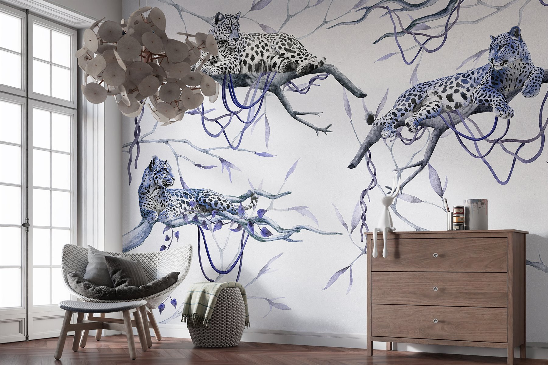Zmień swoje wnętrze w rajską dżunglę dzięki tej urzekającej fototapecie przedstawiającej lamparty wylegujące się na gałęziach. Wyobraź sobie, że budzisz się i czujesz się jakbyś znalazł się w spokojnym lesie. Te wspaniałe koty, z ich charakterystycznymi plamkami i spokojnym zachowaniem, wprowadzają do pomieszczenia zupełnie nową atmosferę. Idealna do salonu lub przytulnego kącika, ta fototapeta to nie tylko dekoracja — to jak posiadanie kawałka natury we własnym domu. Delikatne kolory i szczegółowa grafika zachęcają do marzeń o tropikalnych przygodach, jednocześnie zapewniając relaks. To miejsce, gdzie dzika przyroda spotyka się z ciepłem — kto by tego nie chciał?