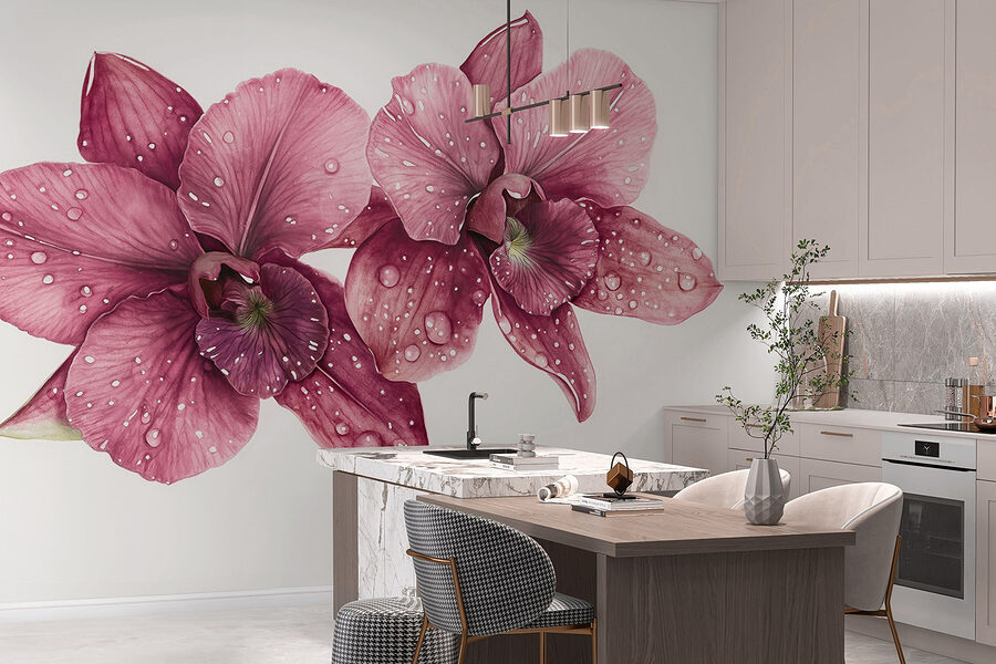 Odmień każdą przestrzeń dzięki tej oszałamiającej fototapecie ściennej z delikatnymi kwiatami całowanymi przez orzeźwiające krople. Wyobraź sobie, że każdego dnia budzisz się w otoczeniu delikatnych różowych orchidei, które zdają się szeptać “cześć”, gdy światło tańczy na ich płatkach. To jak przeniesienie mini ogrodu do domu, bez konewki i uciążliwych owadów. Idealna do dodania odrobiny natury do przytulnego salonu lub spokojnej sypialni, ta fototapeta zaprasza orzeźwiającą atmosferę, która z pewnością poprawi nastrój. Znajomi będą podziwiać i zastanawiać się, jak udało ci się zmienić swoją przestrzeń w kwiatową oazę. To nie tylko dekoracja; to delikatne przypomnienie o pięknie natury w samym domu.