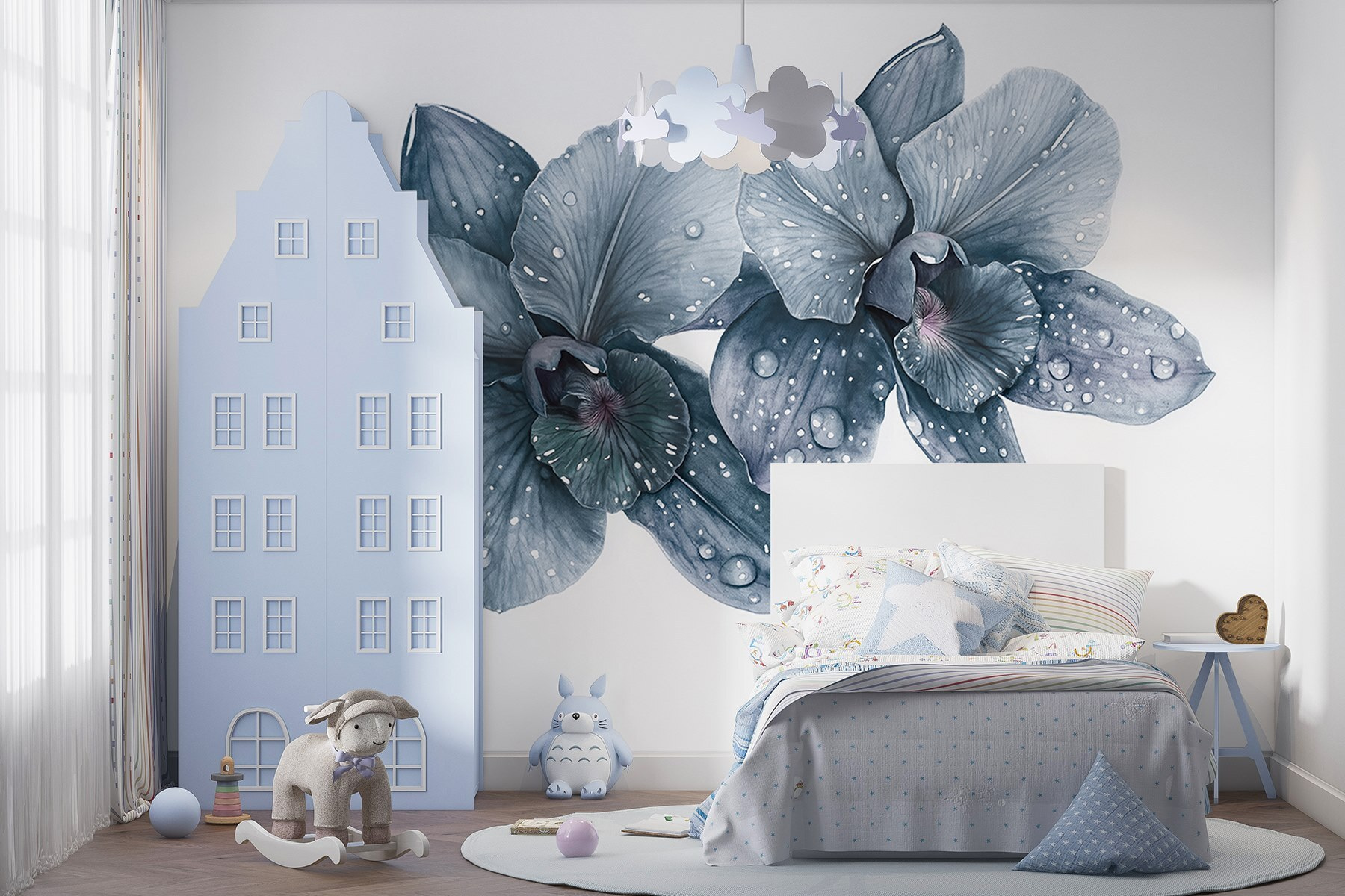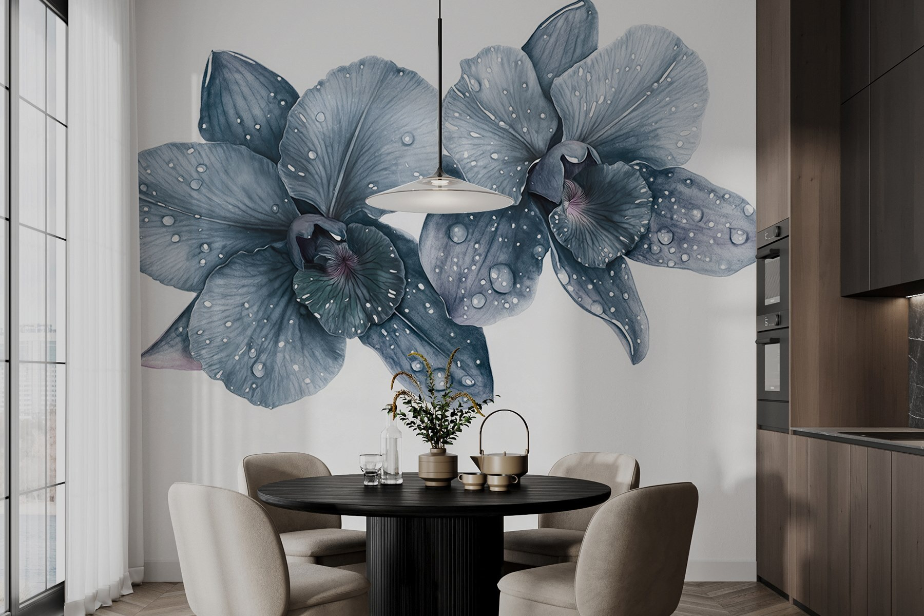 Zmień swoje wnętrze dzięki fototapecie „Delikatne orchidee z poranną rosą”. Wyobraź sobie, że budzisz się w otoczeniu delikatnego piękna tych eleganckich kwiatów, których każdy płatek pokryty jest świeżymi porannymi kroplami rosy. To jak przeniesienie spokojnego ogrodu do wnętrza, bez alergii na pyłki – dzięki Bogu! Delikatne odcienie szarości emanują spokojem, idealnie nadając się do przytulnego kącika do czytania lub eleganckiego salonu. Wyobraź sobie: przyjaciel wpada z wizytą, widzi fototapetę i nagle oboje dyskutujecie o tajnikach pielęgnacji orchidei – lub całkowicie unikacie tego tematu! Urok tej fototapety tkwi w jej prostocie – oddaje ona wdzięk natury z odpowiednią dozą wyrafinowania. Niech te piękności inspirują ciepło i rozmowy w każdym zakątku Twojego domu!