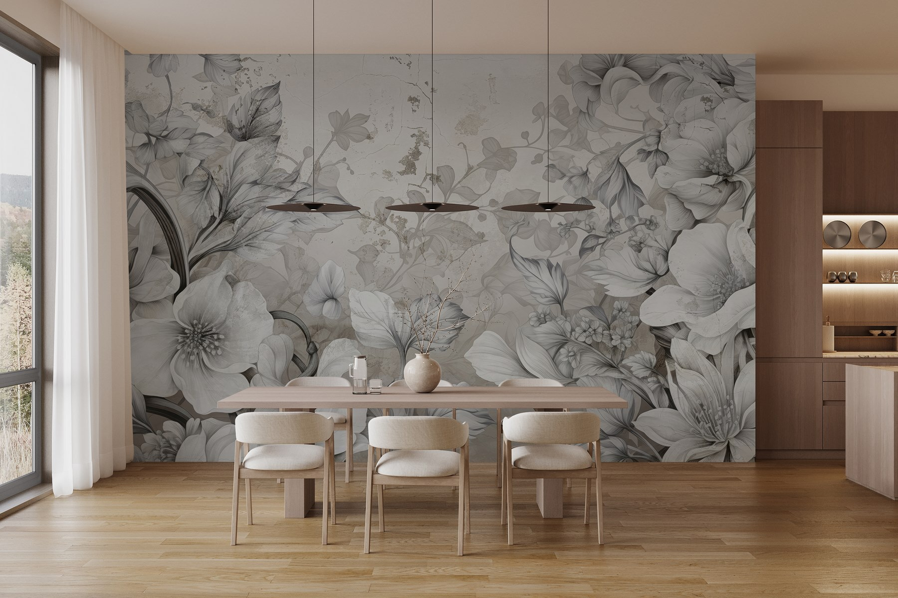 Zmień każde pomieszczenie dzięki urzekającemu pięknu „Delikatnych kwiatów w delikatnych odcieniach szarości”. Ta fototapeta emanuje elegancją, otulając Twoją przestrzeń delikatnym akcentem akwarelowych kwiatów. Wyobraź sobie, że budzisz się, a te delikatne płatki zdobią Twoje ściany, wywołując spokojną atmosferę i inspirując kreatywność. Każde pociągnięcie pędzla opowiada historię, dzięki czemu idealnie nadaje się do przytulnego kącika do czytania lub stylowego salonu. Nie ma tu jaskrawych kolorów — tylko delikatne odcienie, które tchną życie w Twoje wnętrze. To jak wprowadzenie spokojnego ogrodu do domu, bez uciążliwego pyłku. Nie zdziw się, jeśli przyjaciele będą wpadać tylko po to, aby podziwiać tę magię!