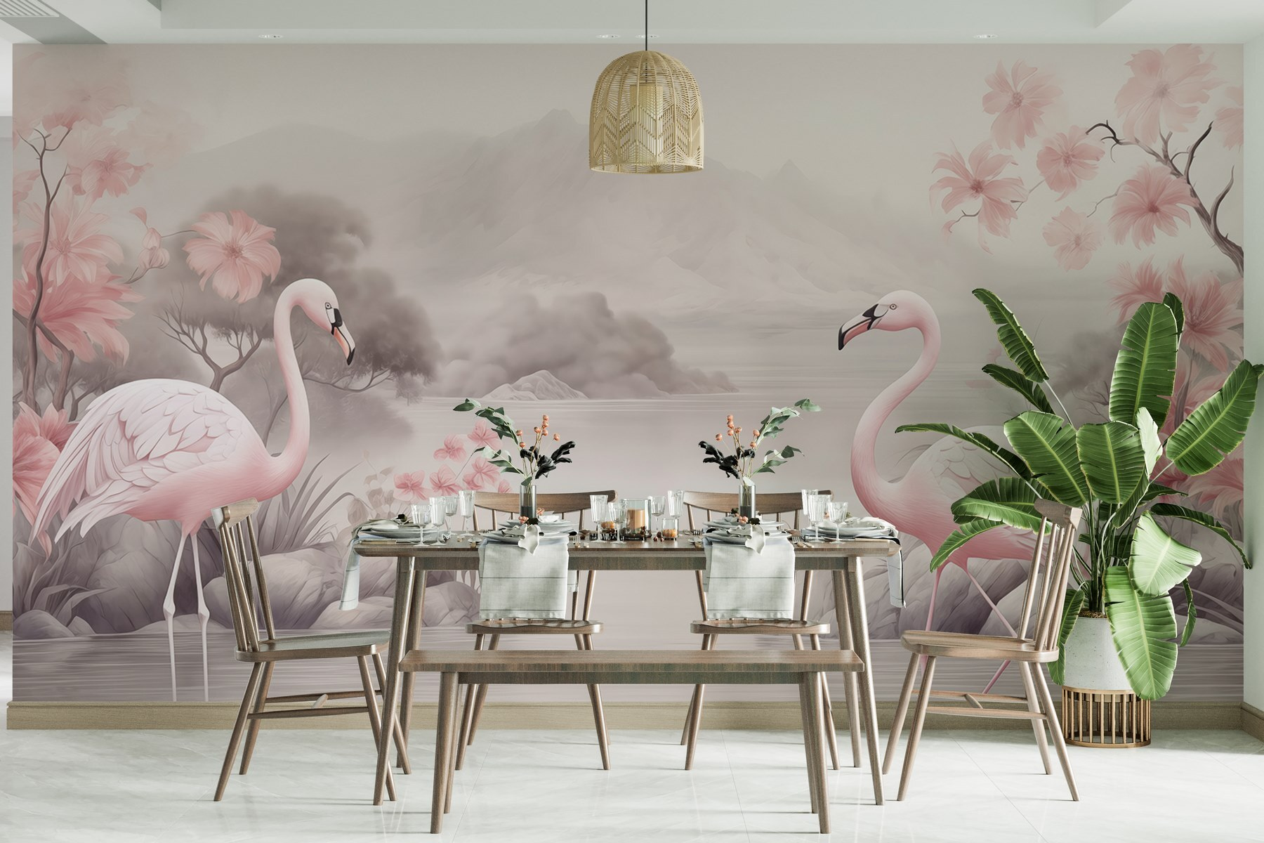 Transform your space into a serene oasis with the “Flamingos in a Lake” mural. Picture this: soft pinks dancing against a misty backdrop, where elegant flamingos glide gracefully across tranquil waters. It’s like a breath of fresh air right on your wall—who wouldn’t want a slice of nature indoors? Imagine sipping tea while admiring the beauty of a Japanese garden, all from the comfort of your living room. This mural doesn’t just decorate; it invites calm and sparks daydreams. Perfect for those who love unique decor, it might just inspire your next adventure. Who knows, maybe you’ll even start planning a tropical getaway!