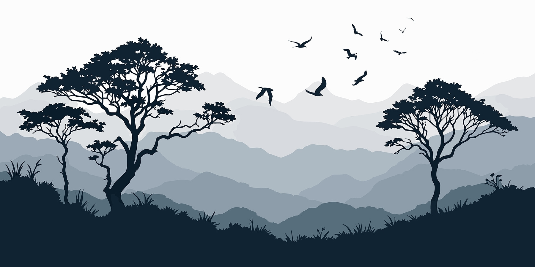 Zmień swoje wnętrze dzięki oszałamiającej fototapecie „Ptaki przelatujące nad pasmem górskim”. Wyobraź sobie tę spokojną scenę otaczającą Twoje ściany i tworzącą atmosferę spokoju, o której nie wiedziałeś, że jej potrzebujesz. Delikatne odcienie gór i drzew wprowadzają poczucie spokoju, niemal jak mini-wakacje bez pakowania walizki! Za każdym razem, gdy na nią spojrzysz, ptaki wydają się szeptać o wolności.