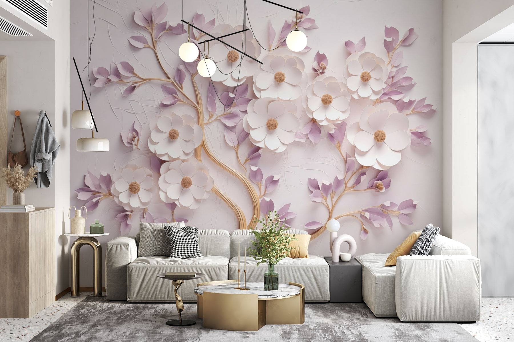 Przekształć każde pomieszczenie w spokojną ucieczkę dzięki fototapecie ściennej Drzewo z kwiatami i liśćmi. Wyobraź sobie wylegiwanie się w przytulnym kącie, w otoczeniu delikatnych kwiatów i eleganckich liści, które wydają się tańczyć na miękkim tle. Ta fototapeta nie tylko rozjaśnia ścianę – zachęca do relaksu, sprawiając, że czujesz się jak w spokojnym ogrodzie. Idealna dla tych, którzy doceniają piękno natury, jest delikatnym przypomnieniem, aby zatrzymać się i powąchać kwiaty, nawet jeśli jest to tylko w salonie. Dzieciom może spodobać się udawanie, że to magiczny las, podczas gdy dorośli mogą cieszyć się uspokajającą atmosferą. Dodaj odrobinę kaprysu i podnieś swój wystrój bez wysiłku!