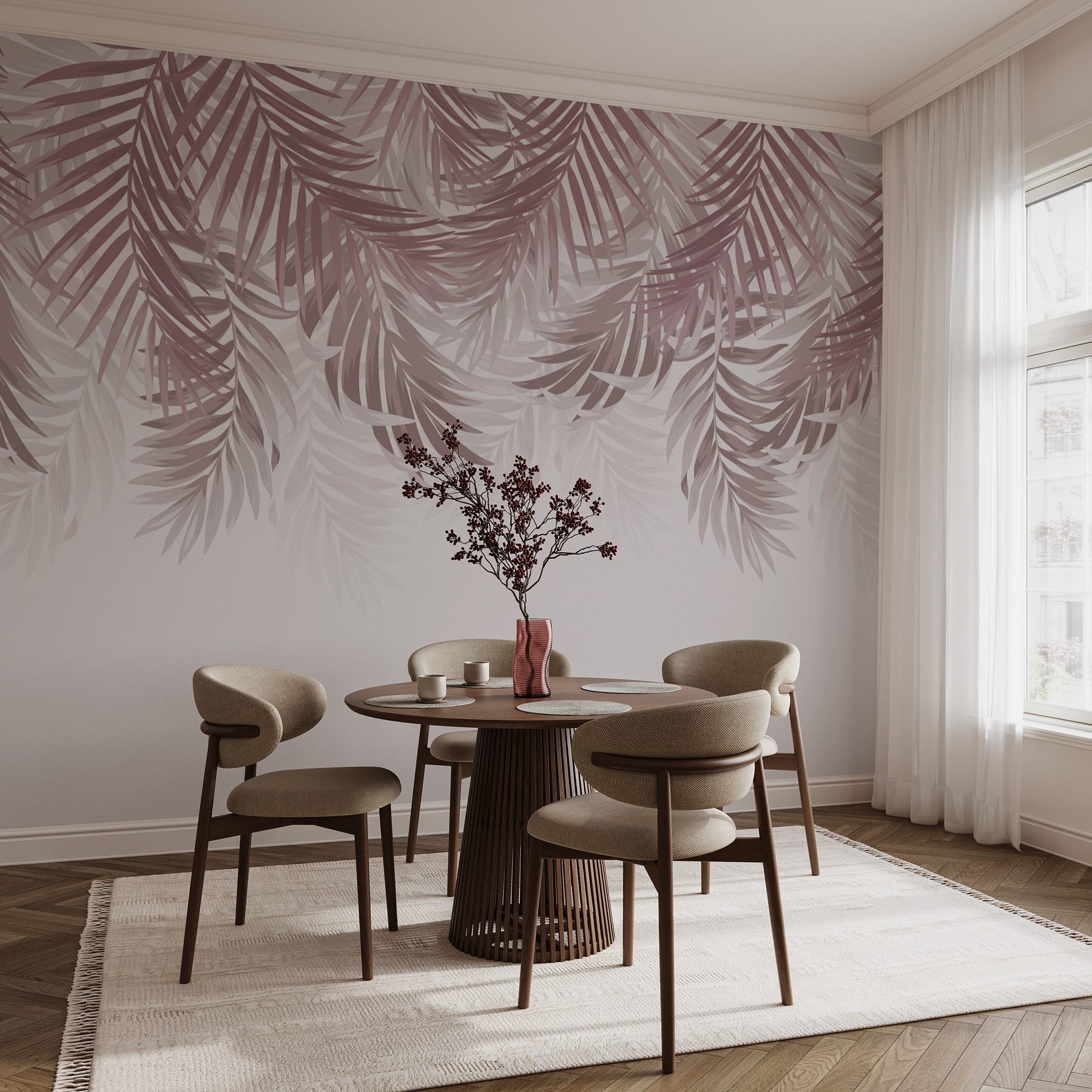 Odmień swoją przestrzeń dzięki fototapecie ściennej “Delicate Foliage in Soft Hues”, w której tropikalne wibracje spotykają się z subtelną elegancją. Wyobraź sobie, że wchodzisz do spokojnej oazy w swoim salonie – miękkie liście palmowe spływają kaskadami w delikatnych odcieniach, które wydają się szeptać relaks. Ta fototapeta tworzy uspokajającą atmosferę, która chwyta za serce, idealną na leniwe popołudnia i przytulne spotkania. Idealna do sypialni lub kącika do czytania, jest jak mini-wakacje za każdym razem, gdy do niej wejdziesz. Chwyć więc filiżankę herbaty, zatop się w chwili i pozwól, aby te delikatne odcienie otuliły Cię jak ciepły uścisk. Nadszedł czas, aby podnieść tę ścianę!