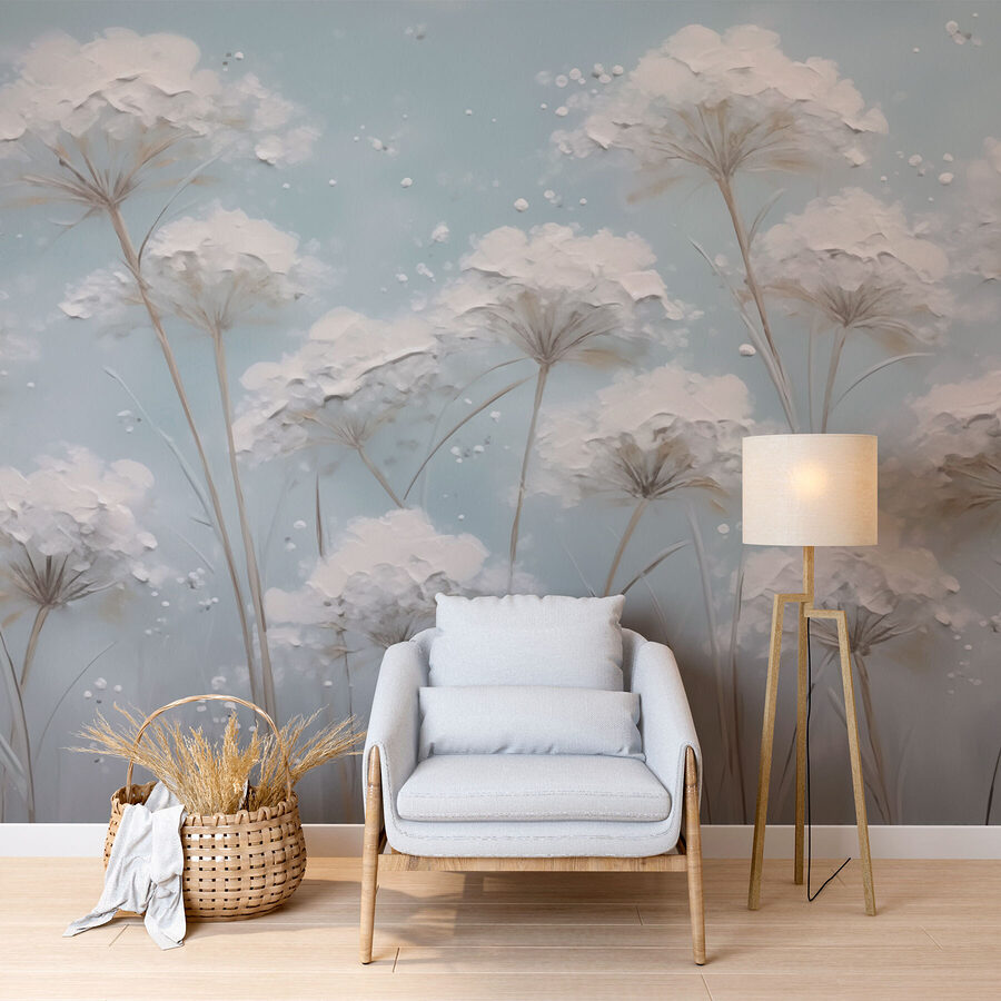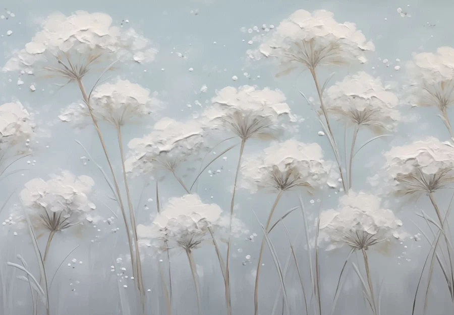 Odmień każdą ścianę dzięki tej czarującej fototapecie, która wniesie pola kwiatów do Twojego domu. Wyobraź sobie spokojne niebieskie tło posypane delikatnymi kwiatami kołyszącymi się łagodnie na lekkim wietrze. To jak wejście w senne marzenia lub poczuć powiew świeżego wiosennego poranka. Ta fototapeta zachęca do ciepła i spokoju, dzięki czemu idealnie nadaje się do przytulnych kącików do czytania lub tętniących życiem salonów. Wyobraź sobie popijanie herbaty lub dzielenie się śmiechem w przestrzeni, która jest jak uścisk natury – miękka, zachęcająca i nieskończenie radosna. Idealny dla tych, którzy uwielbiają odrobinę kaprysu połączonego z elegancją!