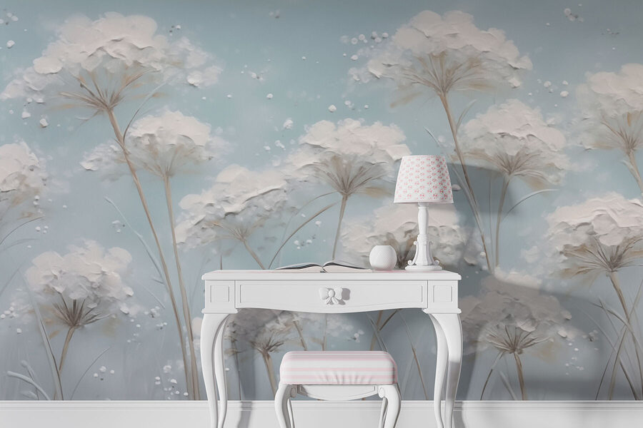 Odmień każdą ścianę dzięki tej czarującej fototapecie, która wniesie pola kwiatów do Twojego domu. Wyobraź sobie spokojne niebieskie tło posypane delikatnymi kwiatami kołyszącymi się łagodnie na lekkim wietrze. To jak wejście w senne marzenia lub poczuć powiew świeżego wiosennego poranka. Ta fototapeta zachęca do ciepła i spokoju, dzięki czemu idealnie nadaje się do przytulnych kącików do czytania lub tętniących życiem salonów. Wyobraź sobie popijanie herbaty lub dzielenie się śmiechem w przestrzeni, która jest jak uścisk natury – miękka, zachęcająca i nieskończenie radosna. Idealny dla tych, którzy uwielbiają odrobinę kaprysu połączonego z elegancją!
