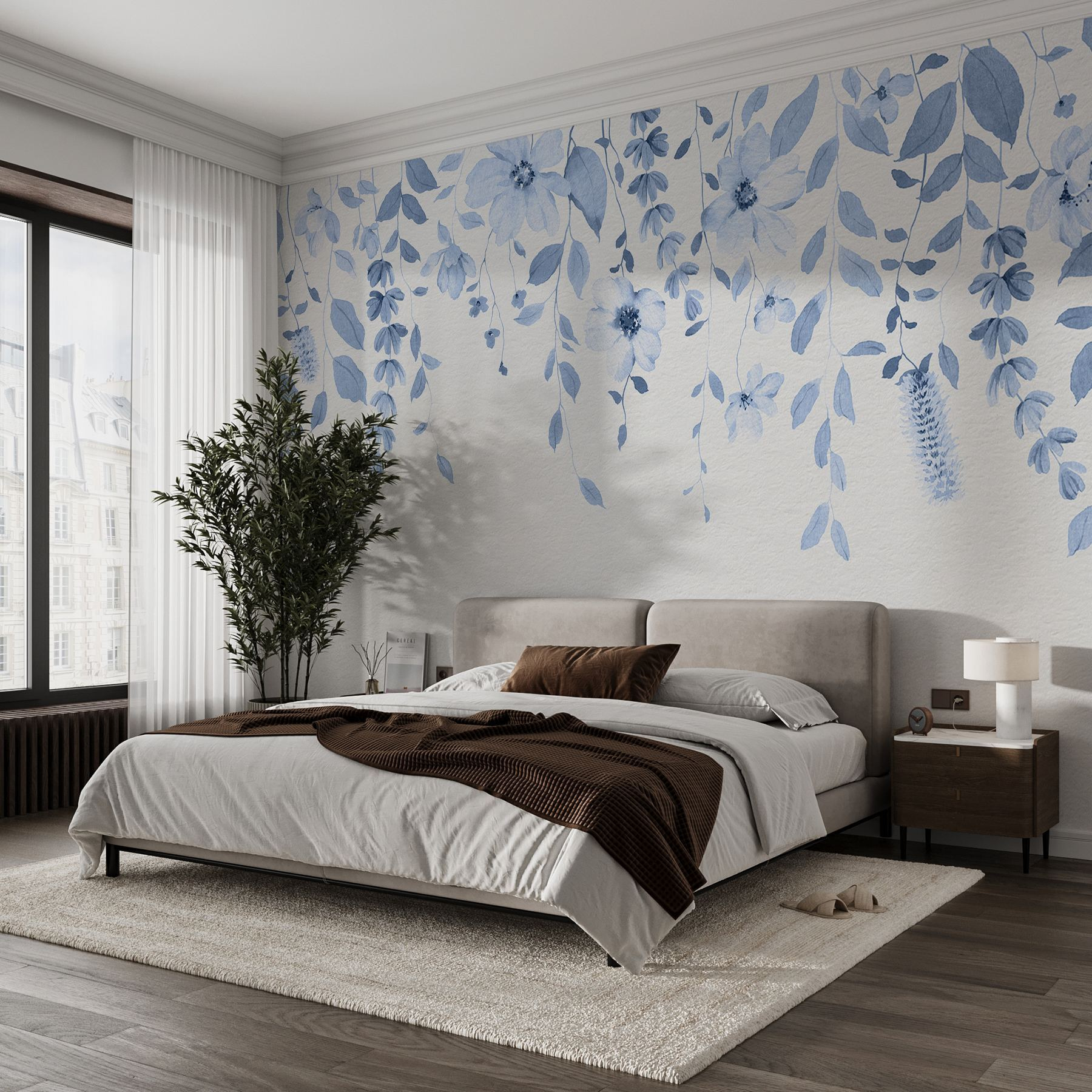Odmień każdą przestrzeń dzięki spokojnemu urokowi fototapety ściennej “Niebieskie kwiaty i liście”. Wyobraź to sobie: miękki, kaskadowy pokaz delikatnych kwiatów i liści, gdzie odcienie niebieskiego tańczą razem jak chłodna bryza w słoneczny dzień. To jak wniesienie odrobiny natury bezpośrednio do pokoju, bez martwienia się o podlewanie!