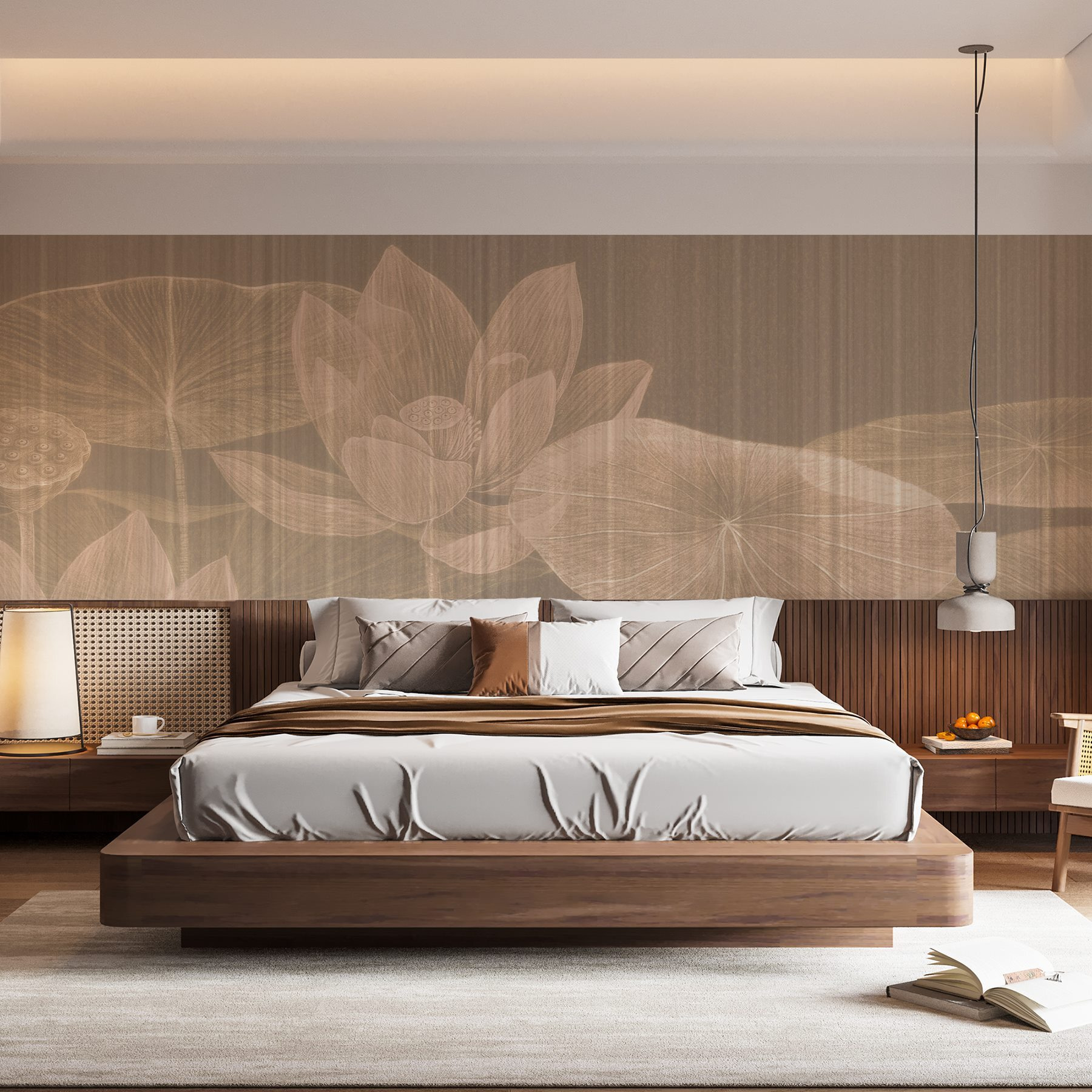 Wyobraź sobie, że wkraczasz do spokojnej oazy za każdym razem, gdy spojrzysz na swoją ścianę. Ta fototapeta, przedstawiająca delikatne kwiaty lotosu spokojnie unoszące się na spokojnej wodzie, wprowadzi ten senny nastrój do twojej przestrzeni. Delikatne kolory i kojący design są jak delikatny uścisk dla oczu. To jak powiew świeżego powietrza, który szepcze spokój i ciszę.
