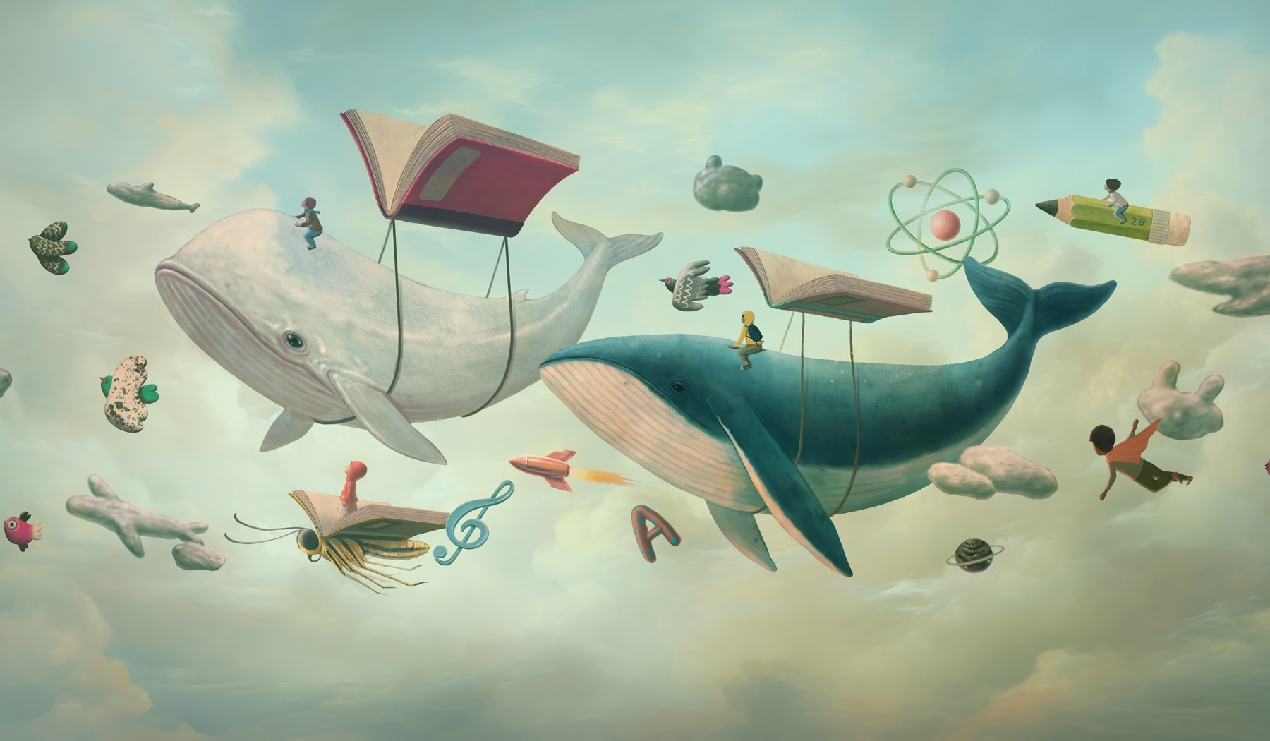 Odmień swoją przestrzeń dzięki kapryśnemu urokowi tej fototapety ściennej przedstawiającej kapryśne wieloryby szybujące po sennym niebie. Te łagodne olbrzymy, unoszące się z książkami, zapraszają wyobraźnię i przygodę do każdego pokoju. To jak wkroczenie w historię, w której czytanie prowadzi do nieoczekiwanych podróży, co czyni ją idealną do przestrzeni dla dzieci lub przytulnych kącików do czytania. Wyobraź sobie to: ciekawskie dziecko, zagubione w myślach, gdy mural pobudza marzenia o wyprawach oceanicznych i eksploracji kosmosu. To nie tylko dekoracja; to zabawna ucieczka, która zamienia ściany w płótno kreatywności. Poza tym, kto nie chciałby mieć kumpla wieloryba, który dotrzyma mu towarzystwa podczas czytania?