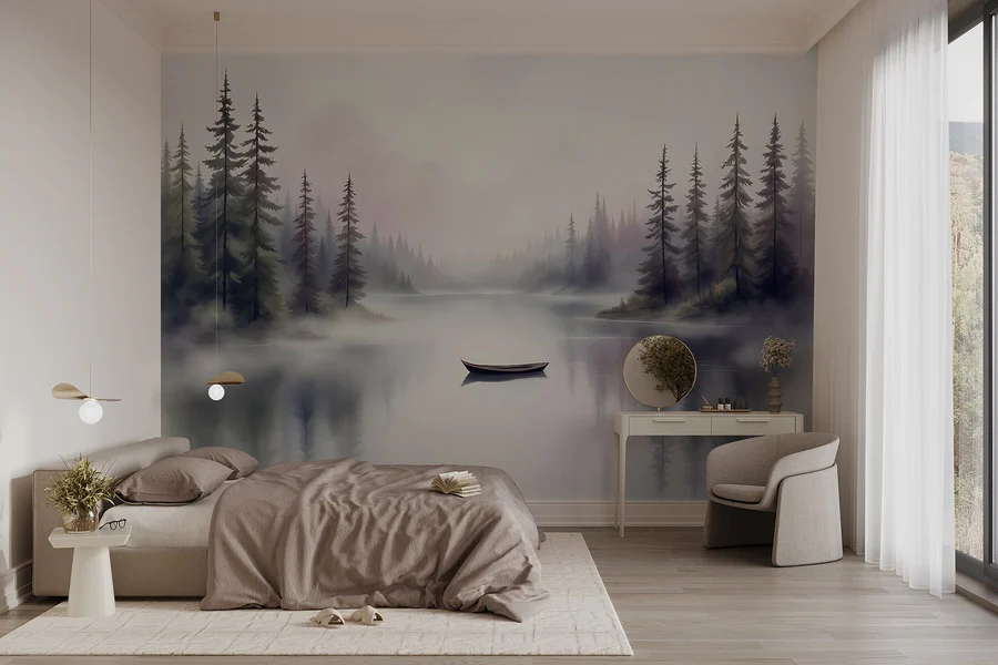Wyobraź sobie, że wkraczasz do spokojnego świata z tą oszałamiającą fototapetą przedstawiającą łódź pływającą po spokojnym jeziorze, otoczoną mglistymi drzewami. To jak sekretna ucieczka bezpośrednio na ścianie, idealna, gdy życie staje się zbyt chaotyczne. Miękkie kolory i delikatne refleksy wprowadzają poczucie spokoju, sprawiając, że każde pomieszczenie staje się przytulnym azylem. Wyobraź sobie, że popijasz kawę i marzysz, zatracając się w tej spokojnej scenie. To nie tylko dekoracja – to chwila, którą można pielęgnować każdego dnia, zapraszając ciepło i odrobinę magii do swojej przestrzeni. Kto nie chciałby poczuć się jak na wakacjach nad jeziorem?