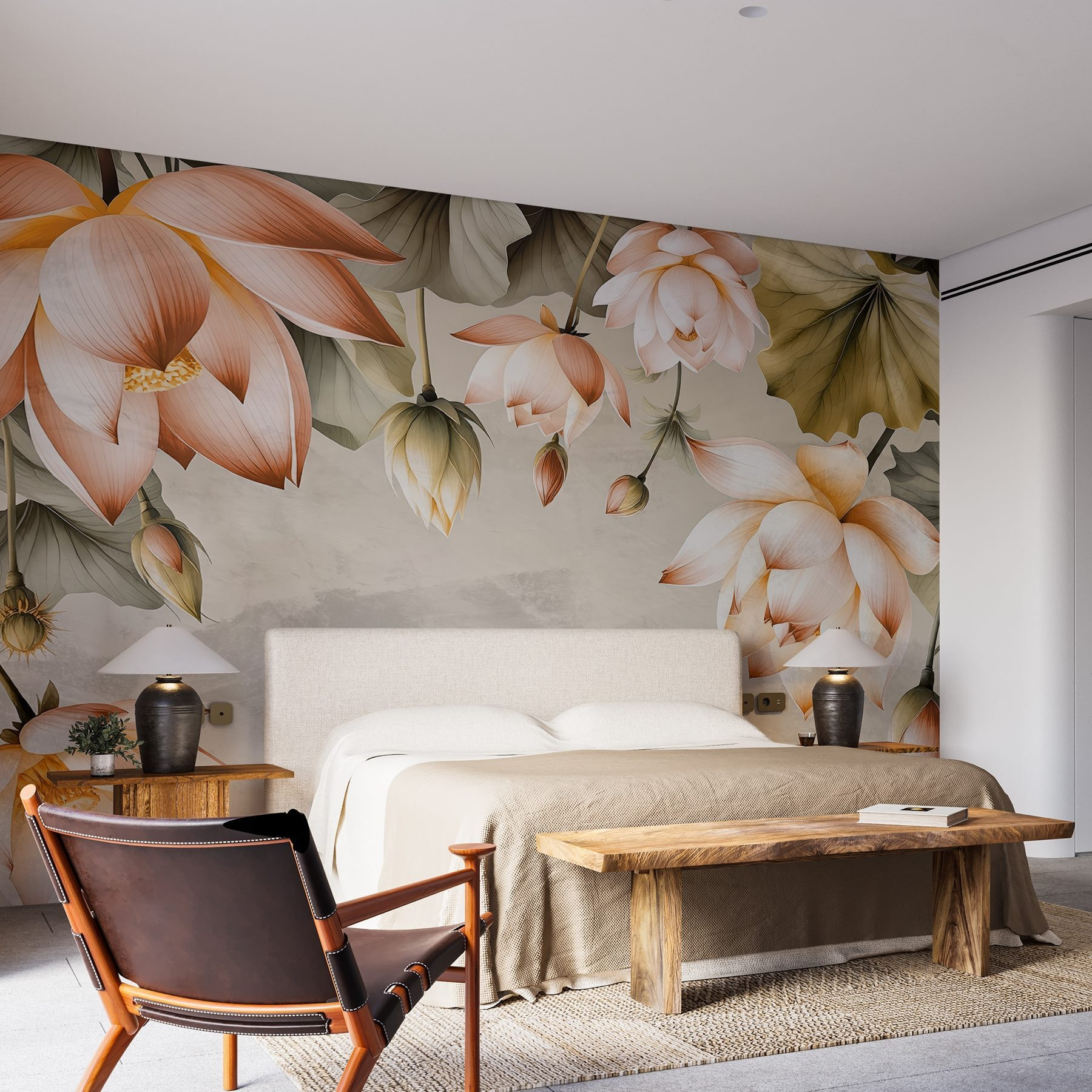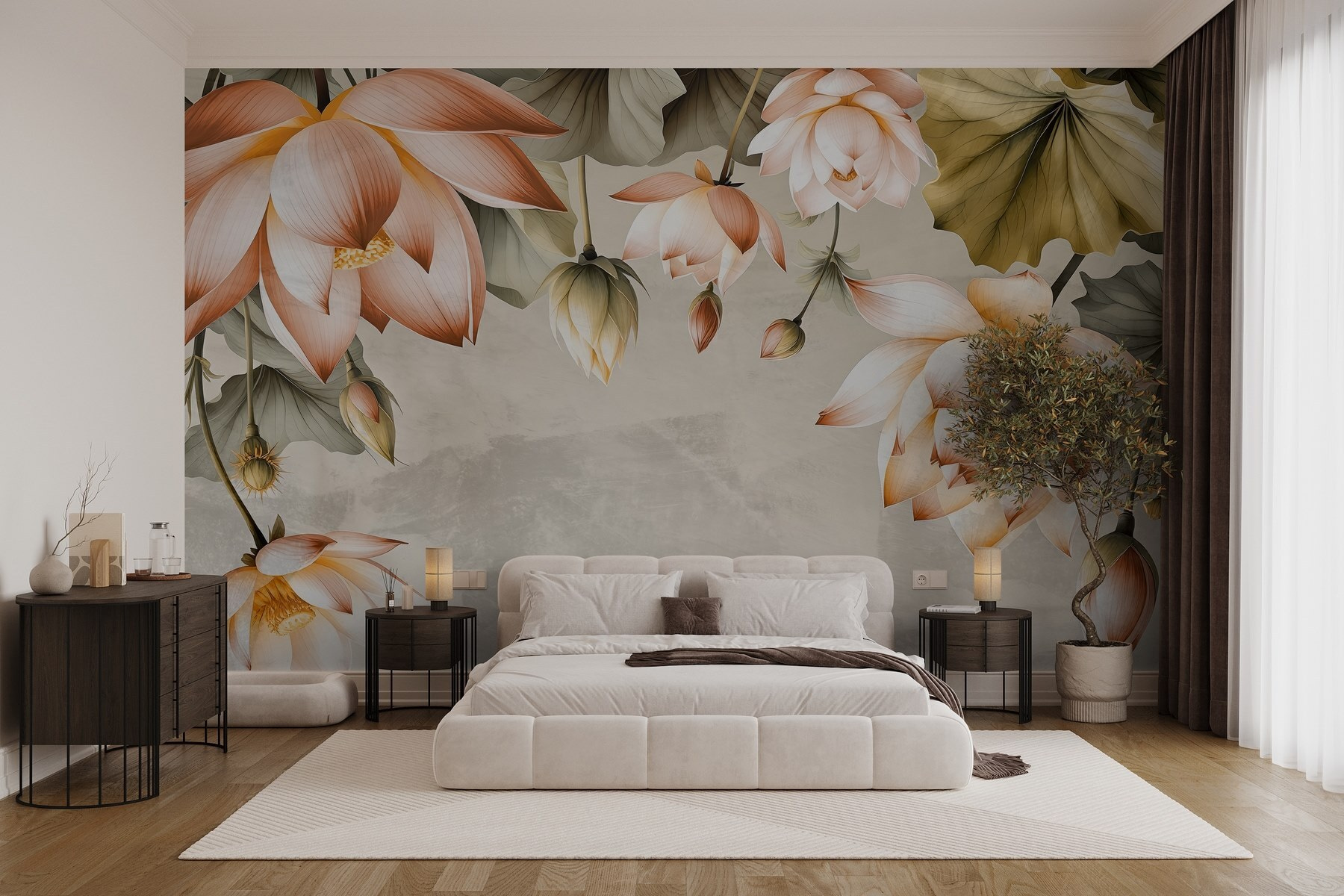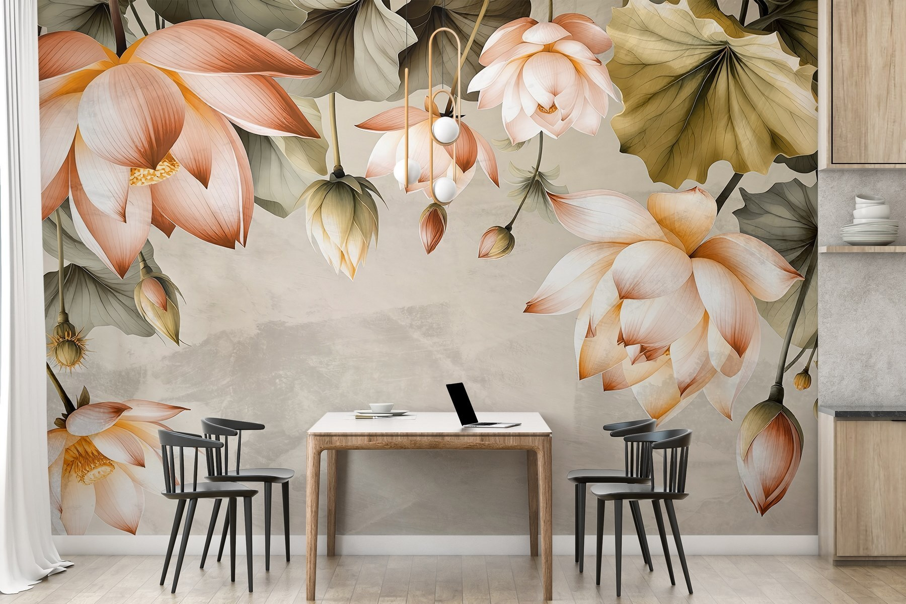 Przekształć swoją przestrzeń w spokojną oazę dzięki tej oszałamiającej fototapecie ściennej z delikatnymi kwiatami w łagodnych odcieniach. Piękne kwiaty zdają się tańczyć z gracją po ścianie, tworząc kojącą atmosferę, która natychmiast poprawia nastrój. Wyobraź sobie, że popijasz poranną kawę, otoczony spokojną, delikatną obecnością tych kwiatów – idealne do każdego pomieszczenia, które potrzebuje odrobiny miłości. Każdy płatek i liść szepcze ciepło, sprawiając, że czujesz się jak na spacerze w słonecznym ogrodzie, nawet w najbardziej szare dni. Co może być lepszego niż przeniesienie tej przyjemnej natury do wnętrza? To nie tylko dekoracja; to mały kawałek natury w domu.