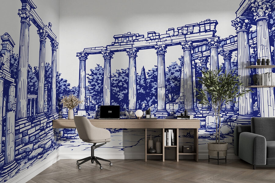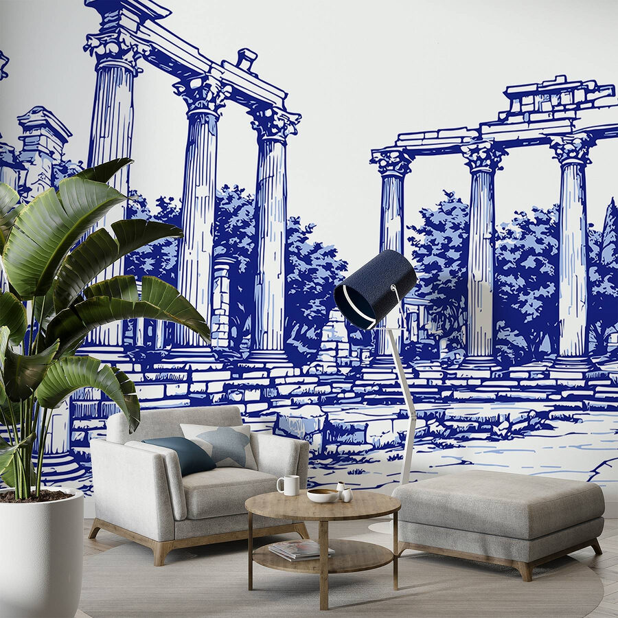 Wkrocz do świata starożytnego uroku dzięki tej oszałamiającej fototapecie ściennej przedstawiającej urzekającą kamienną strukturę ozdobioną eleganckimi kolumnami. Wyobraź sobie, że wchodzisz do swojego pokoju i natychmiast przenosisz się do spokojnych greckich ruin, gdzie światło słoneczne przenika przez bujne drzewa. Bogate detale i piękne linie zachęcają do marzeń o czarującej historii i epickich opowieściach. To jak zaproszenie kawałka natury i tradycji do codziennej przestrzeni. Idealna na pustą ścianę, ta fototapeta dodaje ciepła i charakteru – idealna na przytulne wieczory lub uduchowione spotkania. Pozwól swoim ścianom opowiedzieć wyjątkową historię, która pobudza wyobraźnię!