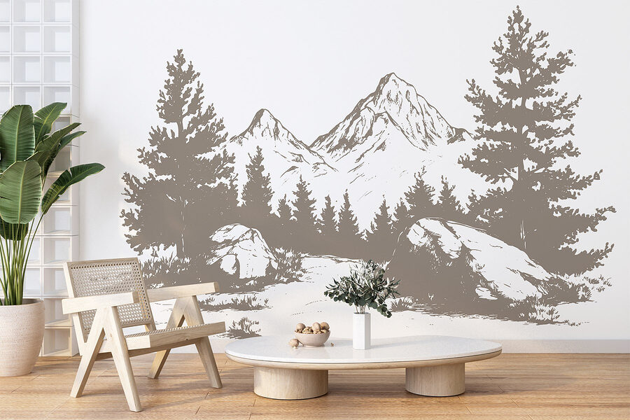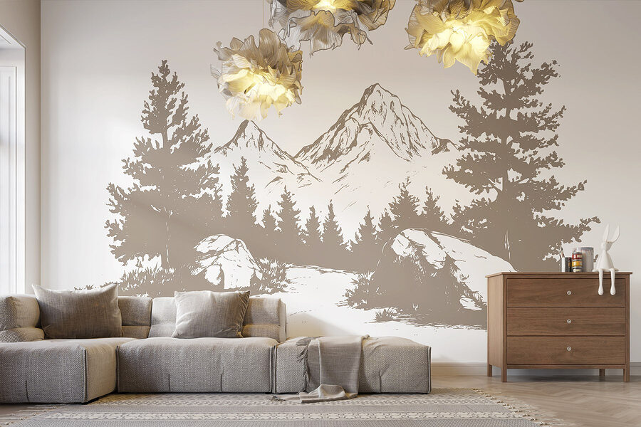 Przekształć dowolną przestrzeń w przytulny azyl dzięki tej fototapecie przedstawiającej spokojne pasmo górskie otoczone majestatycznymi drzewami i solidnymi skałami. Wyobraź sobie popijanie kawy o poranku, czując się jak na łonie natury bez wychodzenia z domu. Wprowadza spokojną atmosferę, idealną do relaksu po długim dniu. Miękkie, ziemiste odcienie dodadzą przytulności każdemu pomieszczeniu, czyniąc go idealnym tłem dla rodzinnych spotkań lub spokojnych wieczorów z książką. Ponadto jest to świetny początek rozmowy – każdy uwielbia dobry widok. Zanurz się w naturze i pozwól, aby ta fototapeta zabrała Cię na małą przygodę każdego dnia.