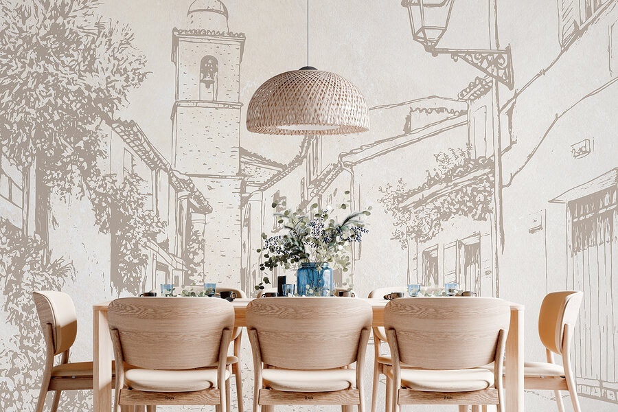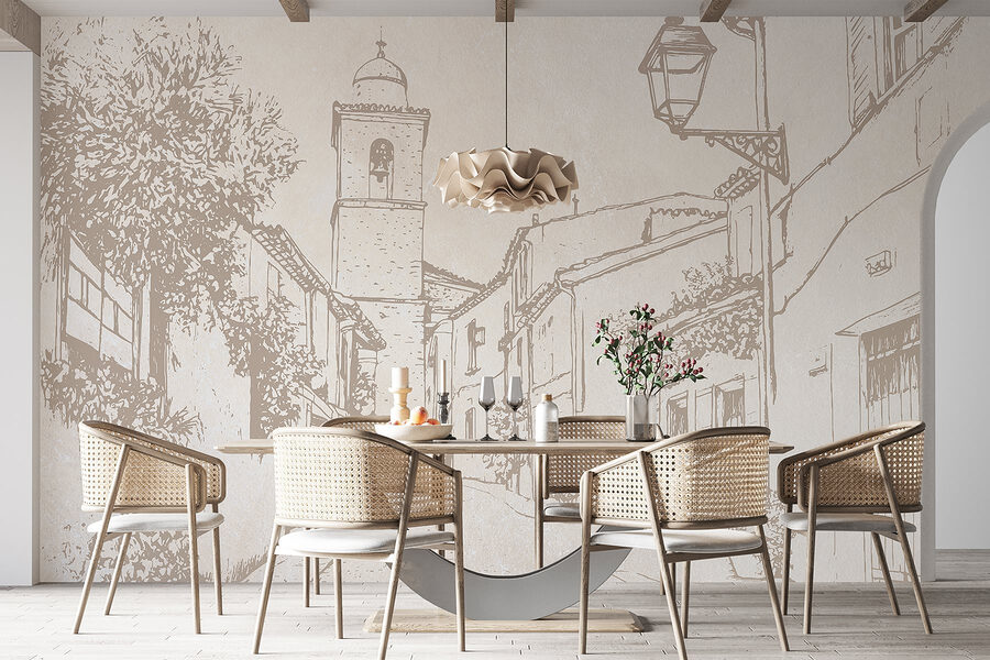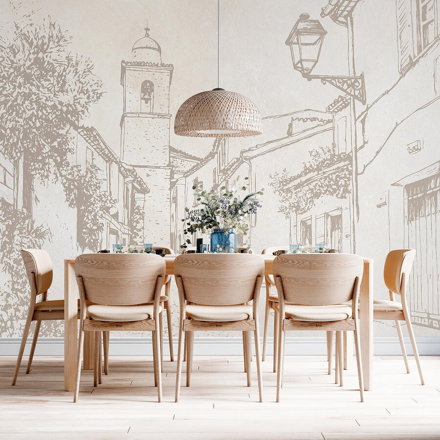 Przekształć dowolny pokój w uroczą ucieczkę dzięki tej fototapecie ściennej, przedstawiającej urokliwą scenę uliczną wraz z dzwonnicą. Wyobraź sobie, że idziesz brukowaną ścieżką, a w powietrzu unosi się zapach świeżych wypieków. Ta fototapeta zaprasza do marzeń o słonecznych popołudniach i przyjaznych sąsiadach. Kapryśne linie i delikatne odcienie tworzą uspokajającą atmosferę, idealną do przestrzeni mieszkalnej lub przytulnego kącika. To tak, jakbyś miał kawałek europejskiej wioski w swoim domu – idealny do wywołania tych pełnych wędrówek rozmów przy kawie.