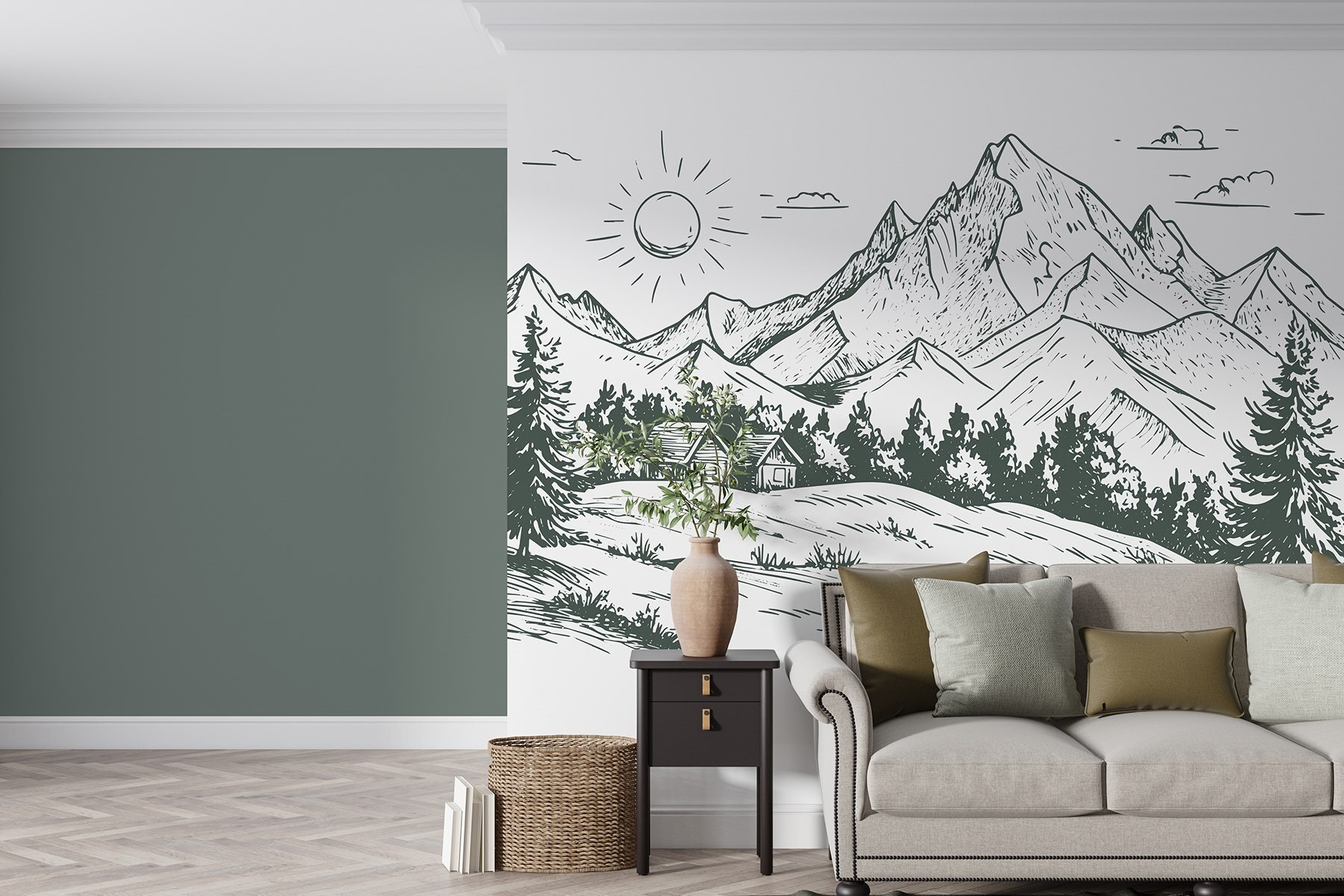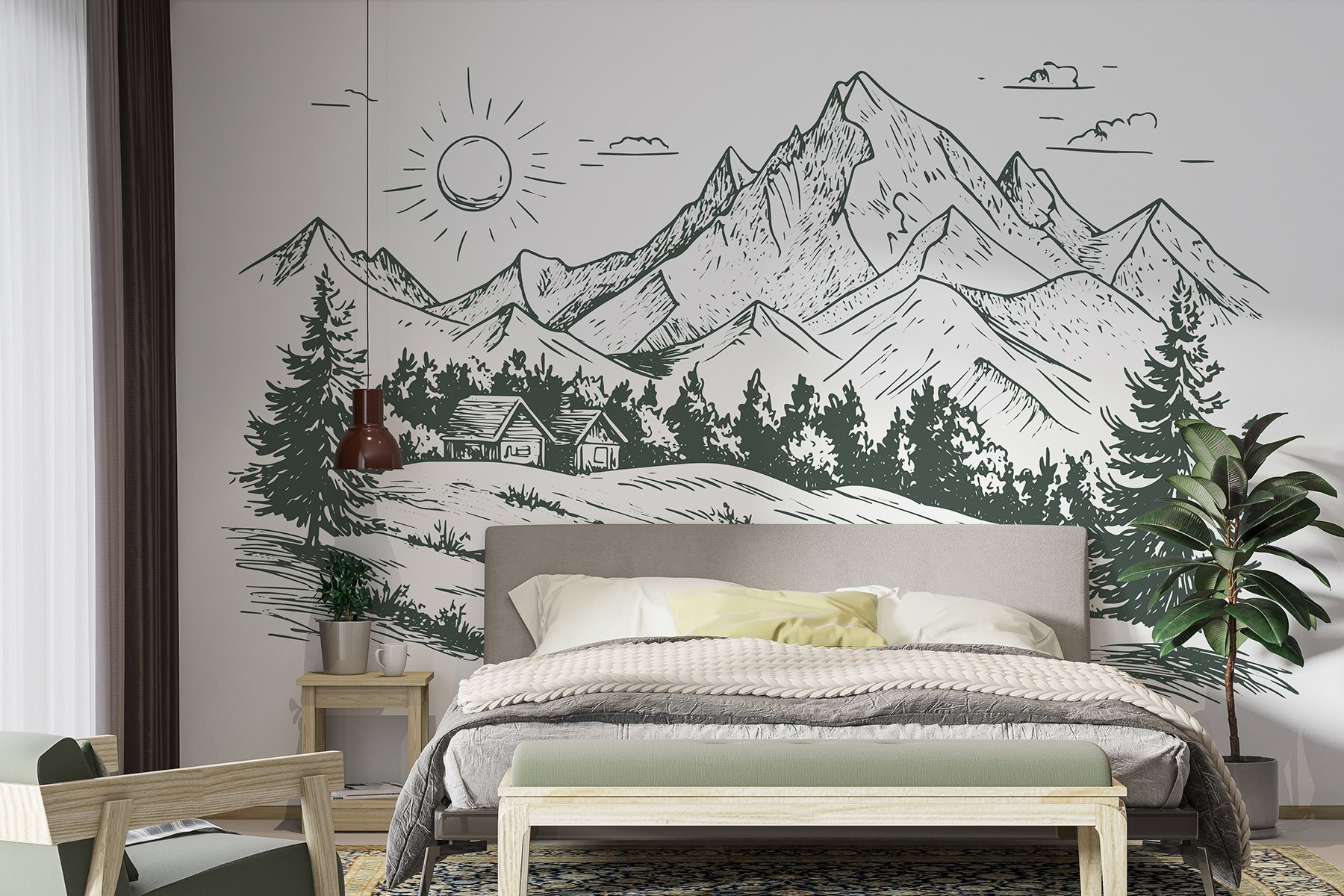 Przekształć pustą ścianę w spokojną ucieczkę dzięki tej urzekającej fototapecie przedstawiającej uroczy dom położony wśród wspaniałych gór i bujnych drzew. Wyobraź sobie, że budzisz się z delikatnym przypomnieniem piękna natury w swoim salonie lub domowym biurze. Wyraziste linie i ziemiste odcienie tworzą spokojną atmosferę, idealną do relaksu po długim dniu. To jak przeniesienie odrobiny wspaniałej przyrody do wnętrza, bez komarów. Niezależnie od tego, czy jest to przytulny kącik do czytania, czy zachęcająca przestrzeń dla przyjaciół, ta fototapeta tworzy nastrój. Kto nie chciałby poczuć trochę więcej Zen w swoim codziennym życiu?