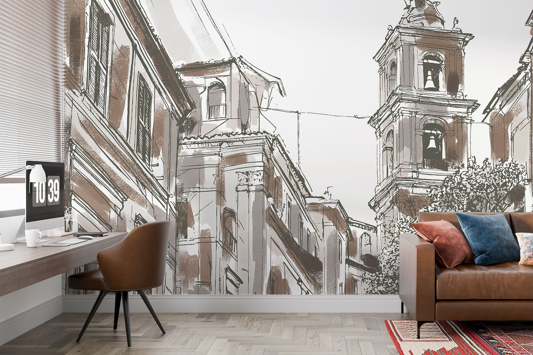 Odmień swoją przestrzeń dzięki tej oszałamiającej fototapecie ściennej, przedstawiającej pięknie narysowany budynek z uroczymi dzwonkami. Wyobraź sobie relaks w przytulnym kącie, światło słoneczne wpadające do środka i tę fototapetę wnoszącą odrobinę historii architektury bezpośrednio na twoje ściany. To jak delikatny szept przeszłości, gdzie każde spojrzenie zachęca do marzeń o odległych miejscach. Subtelne odcienie tworzą ciepłą atmosferę, dzięki czemu idealnie nadaje się do salonu lub spokojnego kącika do czytania. Kto nie chciałby zostać porwany przez fototapetę, która sprawia wrażenie artystycznej ucieczki?