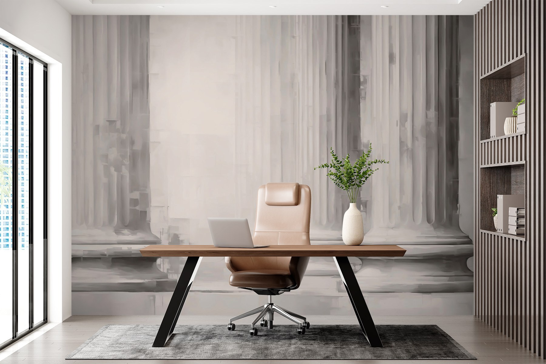 Ta fototapeta bawi się światłem i cieniem, tworząc głębię, która sprawia, że oko tańczy. Idealne tło dla przytulnych spotkań, a nawet samotnych chwil przy kawie, zachęca do rozmów i marzeń. To subtelne przypomnienie, że każdy zakątek domu może opowiedzieć historię. Całkiem fajne, prawda? Niezależnie od tego, czy dążysz do wyrafinowanego stylu, czy po prostu chcesz dodać trochę artystycznego stylu, ta fototapeta ma wszystko pod kontrolą.