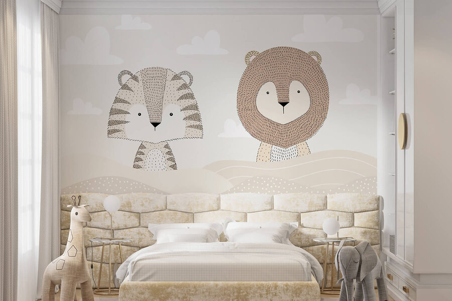 Wnieś odrobinę przygody do świata każdego malucha dzięki tej zachwycającej fototapecie przedstawiającej lwa i tygrysa wylegujących się w spokojnym pustynnym krajobrazie. To jak tropikalne wakacje bezpośrednio na ścianach! Delikatne kolory tworzą spokojną atmosferę, idealną do snucia marzeń w ciągu dnia lub przytulania się w nocy. Wyobraź sobie opowieści na dobranoc o eskapadach do dżungli pod tymi uroczymi zwierzątkami – maluchy będą odpływać myślami o zabawnych przygodach. Bohater i przyjaciel, ta fototapeta sprawi, że każdy pokój poczuje się nieco bardziej magiczny. Idealna do pokoju dziecięcego lub żłobka, dodaje zarówno zabawy, jak i ciepła. Poza tym, kto nie kocha pary uroczych zwierzęcych przyjaciół?