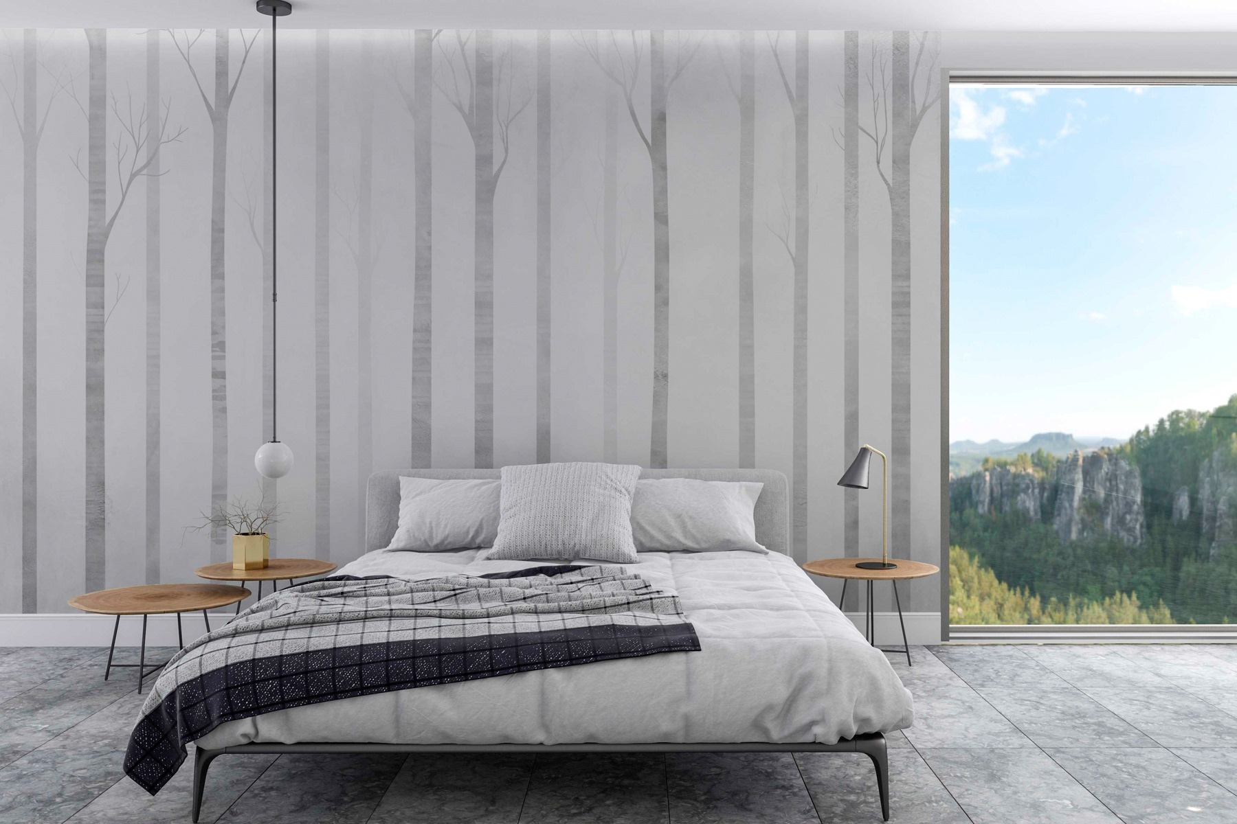Wyobraź sobie, że wkraczasz do sennego lasu, otulonego miękkim kocem mgły. Ta fototapeta ścienna, przedstawiająca spokojną grupę drzew dryfujących we mgle, tworzy pogodną atmosferę, której trudno się oprzeć. Jest idealna do dodania chłodnego, inspirowanego naturą akcentu do każdego pomieszczenia – jak przytulny wypad do domku bez wychodzenia z domu. Wyobraź go sobie w kąciku do czytania, gdzie stoi parująca filiżanka herbaty, lub za wygodną sofą, zapraszając do leniwych popołudni. Subtelne odcienie szarości zapewniają spokój, a drzewa szepczą historie o wędrówkach po lesie. Przenieś kawałek natury do domu i pozwól, aby każde spojrzenie wywołało odrobinę spokoju i zachwytu.