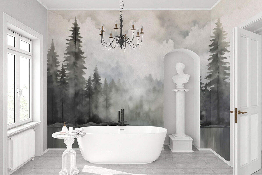 Odmień każdą przestrzeń dzięki tej oszałamiającej akwarelowej fototapecie przedstawiającej las i spokojne jezioro. Wyobraź sobie, że wchodzisz do pokoju i czujesz się, jakbyś znalazł się w objęciach natury. Delikatne odcienie szarości i zieleni zapewniają uspokajającą atmosferę, idealną do stworzenia spokojnego miejsca w domu.