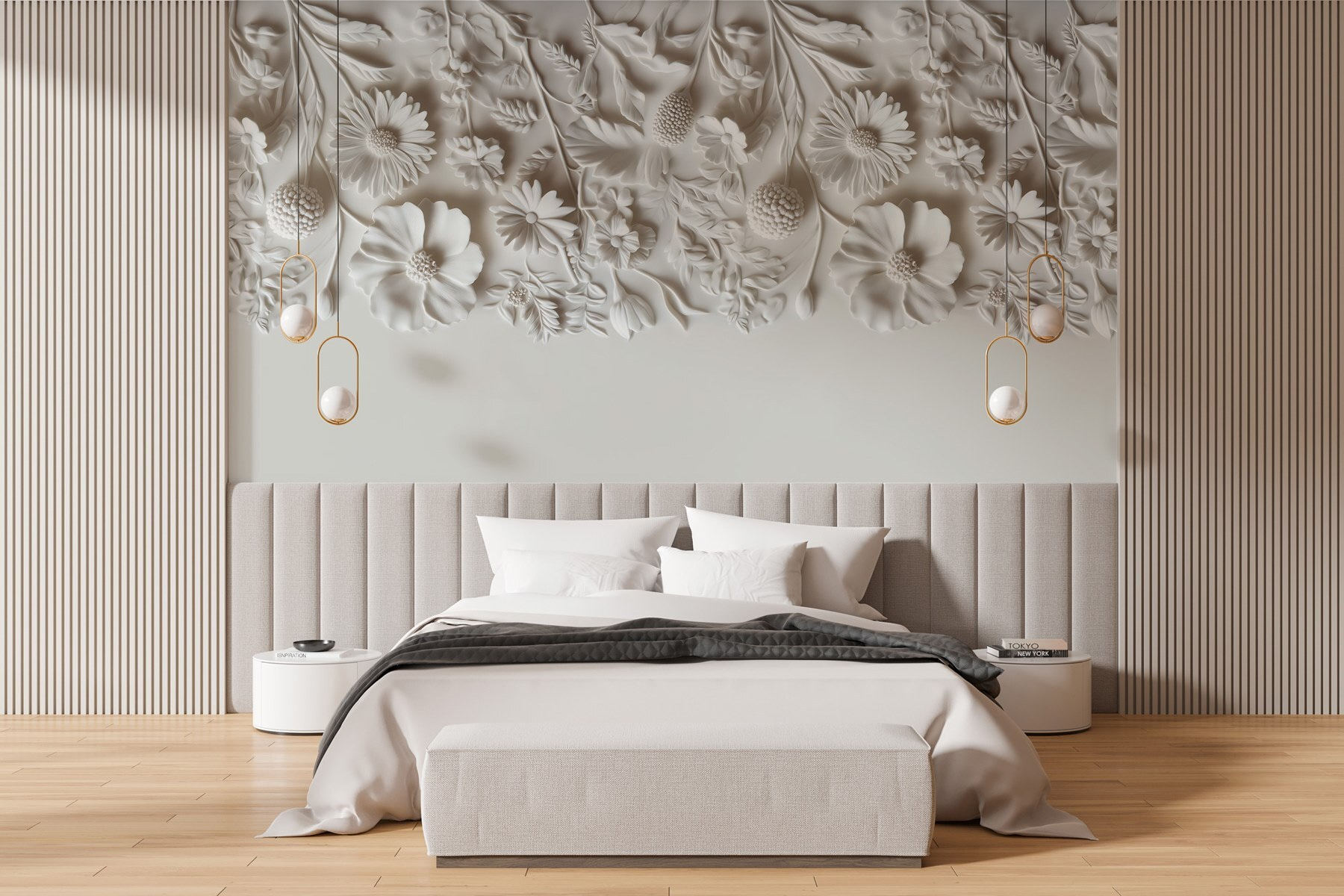 Przekształć dowolną przestrzeń w spokojny ogród dzięki tej kapryśnej białej fototapecie w kwiaty. Wyobraź sobie, że wchodzisz do swojego pokoju i czujesz się otoczony delikatnie kwitnącymi kwiatami, z których każdy opowiada małą historię wiosny. Delikatne wzory tchną życie w ściany, zapraszając ciepło i spokój – idealne na przytulne noce.