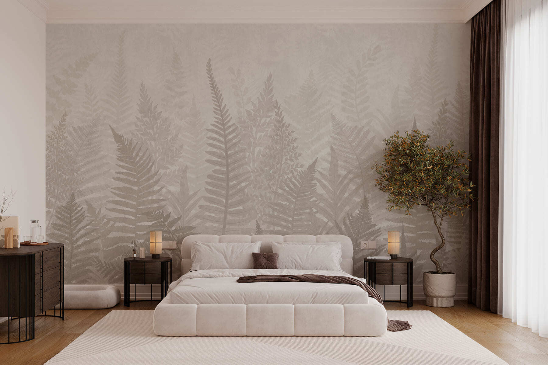 Przekształcenie ściany za pomocą fototapety Liście paproci jest jak zaproszenie natury do domu. Wyobraź sobie, że wchodzisz do przytulnego pokoju, w którym miękkie, liściaste wzory tworzą uspokajającą atmosferę. Te liście paproci? Są jak małe szepty z zewnątrz, delikatnie kołyszące się bez powiewu wiatru. Idealna do salonu lub chłodnego kącika do czytania, ta fototapeta dodaje głębi i ciepła bez przytłaczania przestrzeni. To jak natychmiastowa ucieczka do spokojnego lasu, gdzie znikają zmartwienia i panuje komfort. Poczuj spokojną energię za każdym razem, gdy przechodzisz obok – kto by się nie uśmiechnął?