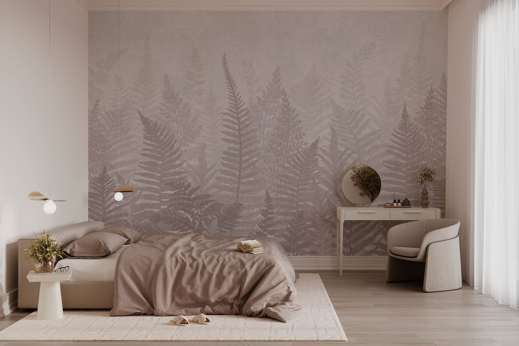 Przekształć dowolny pokój w spokojną ucieczkę dzięki tej czarującej fototapecie przedstawiającej liście paproci spowite senną mgłą. To jak przeniesienie kawałka natury do wnętrza bez okazjonalnego pająka lub uciążliwego robaka. Wyobraź sobie, że budzisz się w miękkiej zieleni subtelnie mieszającej się z delikatnymi szarościami – to uspokajające, odświeżające i odrobinę magiczne. Ten wzór wprowadza spokojną atmosferę, idealną do przytulnych zakątków lub tętniących życiem przestrzeni mieszkalnych. To tak, jakby szeptać światu na zewnątrz, że można zwolnić i odetchnąć. Miłośnicy przyrody poczują się jak w domu, otuleni esencją natury.