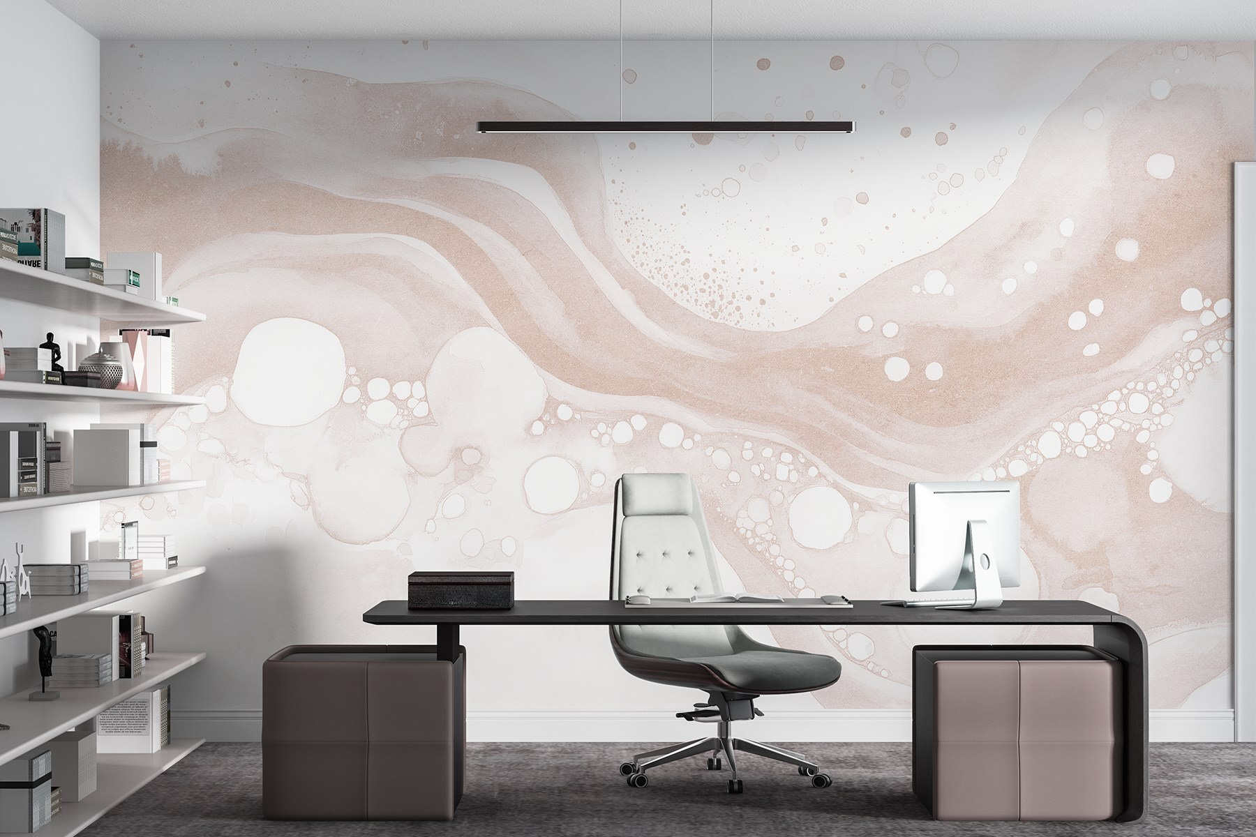 Przekształć nudną przestrzeń w spokojną ucieczkę dzięki tej oszałamiającej fototapecie ściennej “Biało-brązowa ciecz z białymi kółkami i kropkami”. Wyobraź sobie, że budzisz się w miękkich, wirujących odcieniach, które tańczą po ścianie, tworząc delikatną atmosferę, która zachęca do relaksu. Unikalne kropki i płynne kształty naśladują odrobinę kreatywności – idealne do przytulnego salonu lub marzycielskiej sypialni.