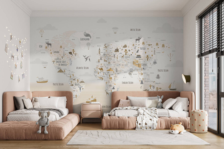 Przekształć dowolną przestrzeń w małą strefę przygód dzięki fototapecie ściennej Mapa świata. Wyobraź to sobie – dzieci siedzące ze skrzyżowanymi nogami, z błyszczącymi oczami, śledzące palcami kontynenty i oceany. Ta fototapeta to nie tylko sztuka; to zaproszenie do odkrywania i nauki. Dzięki zabawnym ilustracjom zwierząt i kultowych punktów orientacyjnych, pobudza ciekawość i rozpala wyobraźnię. Niezależnie od tego, czy jest to pokój dziecięcy, czy kącik do nauki, dodaje odrobinę kaprysu, który sprawia, że każde spojrzenie czuje się jak mini ucieczka. Kto wie? Może zainspiruje to przyszłych globtroterów! Rozjaśnij te ściany i niech rozpocznie się wędrówka!