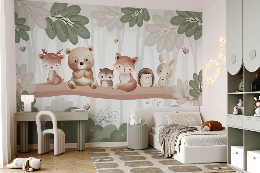 Wyobraź sobie przytulny kącik wypełniony urokiem leśnej krainy czarów. Ta zachwycająca fototapeta przedstawia uroczą załogę zwierzęcych przyjaciół siedzących na gałęzi, gotowych wnieść odrobinę kaprysu do każdej przestrzeni. Wyobraź sobie nieśmiałego jelenia, ciekawskiego niedźwiedzia i figlarnego lisa, a wszystko to pośród zielonych liści. To idealne tło dla dziecięcego pokoju, pobudzające do snucia opowieści o przygodach w magicznym lesie. Każde spojrzenie zachęca do chichotu i wyobraźni, tworząc ciepło, które otula jak ulubiony koc. Przekształć zwyczajność w coś naprawdę wyjątkowego z tymi uroczymi leśnymi kumplami!