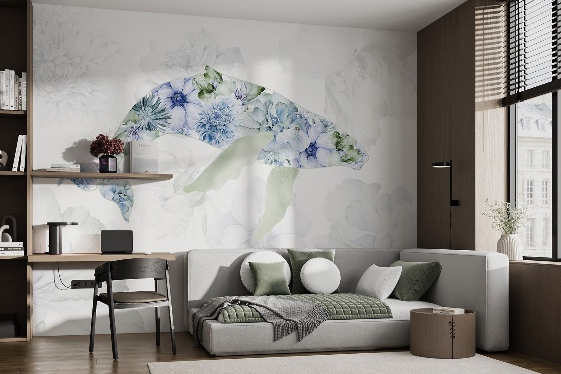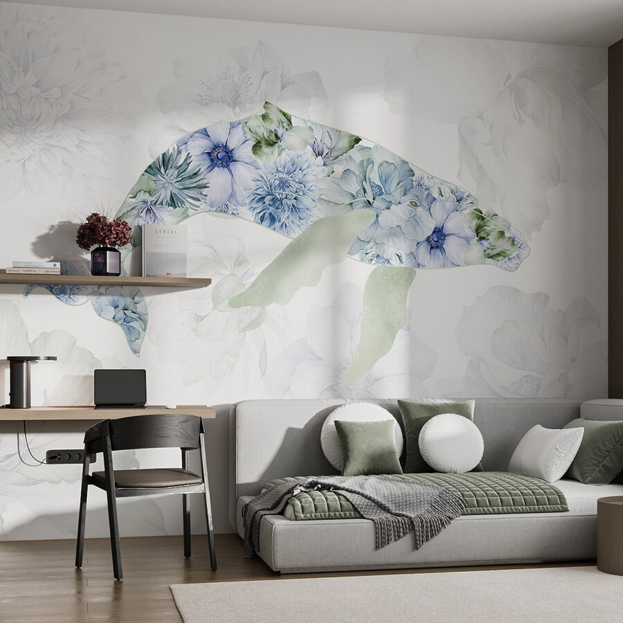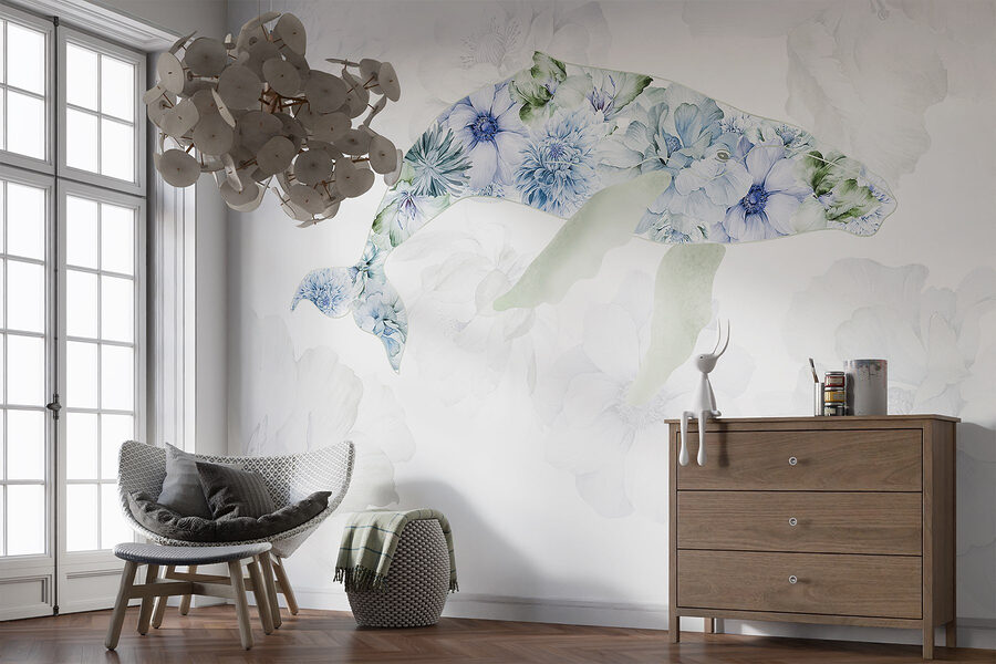 Odmień swoją przestrzeń dzięki tej czarującej fototapecie ściennej przedstawiającej wieloryba obsypanego zabawnymi kwiatami. Wyobraź sobie, że wchodzisz do pokoju i od razu czujesz spokój morza i kaprys ogrodu. Łagodne odcienie i delikatne płatki zapraszają do łagodnej, spokojnej atmosfery, idealnej do przytulnego kącika do czytania, a nawet zabawnego pokoju dziecięcego. To tak, jakby mieć kawałek natury bezpośrednio na ścianie, uchwycić radość życia oceanu i kwiatowe piękno. Wyobraź sobie znajomych podziwiających ją i pytających, gdzie znalazłeś taki klejnot. Zanurz się i pozwól fototapecie tchnąć życie w twoje ściany!