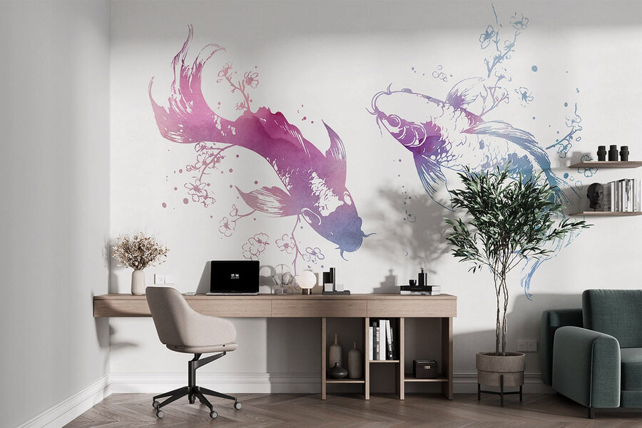 Odmień swoją przestrzeń dzięki tej czarującej fototapecie ściennej przedstawiającej dwie eleganckie ryby pływające wśród akwarelowych plam. To jak przeniesienie kawałka morza prosto do domu, bez piasku w butach. Delikatne odcienie tańczą na fototapecie, wywołując poczucie spokoju, które może z łatwością rozjaśnić każde pomieszczenie. Wyobraź sobie, że siedzisz w przytulnym kącie, popijając herbatę, podczas gdy te wdzięczne ryby zdają się przepływać obok – możesz nawet zapomnieć, że jesteś w domu. To uroczy akcent, który szepcze wyrafinowanie i spokój, idealny do stworzenia spokojnej atmosfery. Nie zdziw się, jeśli zaczniesz rozmawiać z rybami; mogą mieć historie do opowiedzenia!