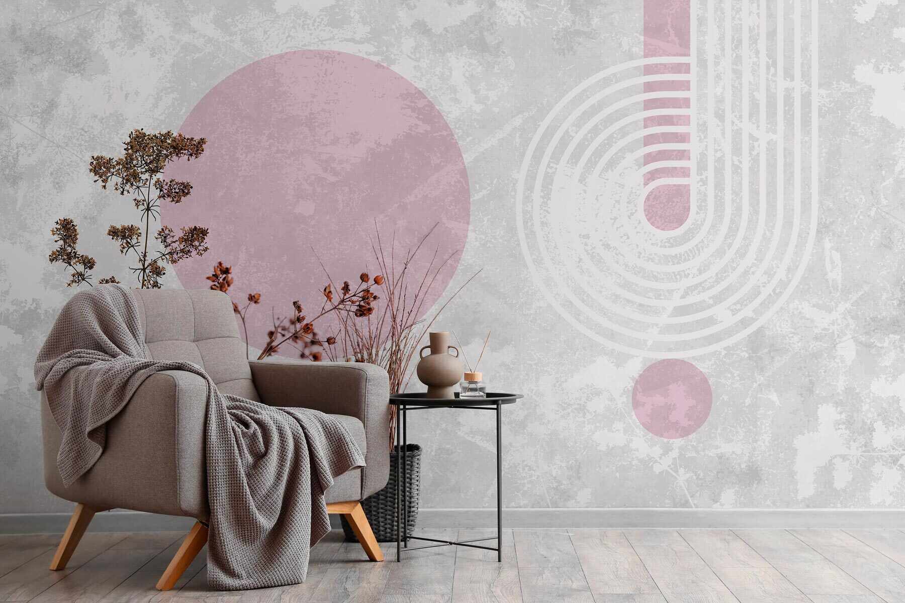 Przekształć zwykłą ścianę w stylową dekorację dzięki tej fototapecie ściennej przedstawiającej rośliny z brązowymi liśćmi i zabawnymi fioletowymi kółkami. Wyobraź sobie: popijasz poranną kawę w otoczeniu ciepła i kaprysu. Ziemiste odcienie wprowadzają przytulny nastrój, podczas gdy te żywe koła dodają wystarczająco dużo pizzazz, aby ożywić każdą przestrzeń. To jak zaproszenie małego kawałka natury do domu bez konieczności podlewania! Goście pokochają nieoczekiwany styl, a kto wie, może to po prostu wywołać kilka wspaniałych rozmów. Idealna do kącika, który potrzebuje odrobiny miłości, ta fototapeta to wspaniały sposób na wyrażenie unikalnego stylu.
