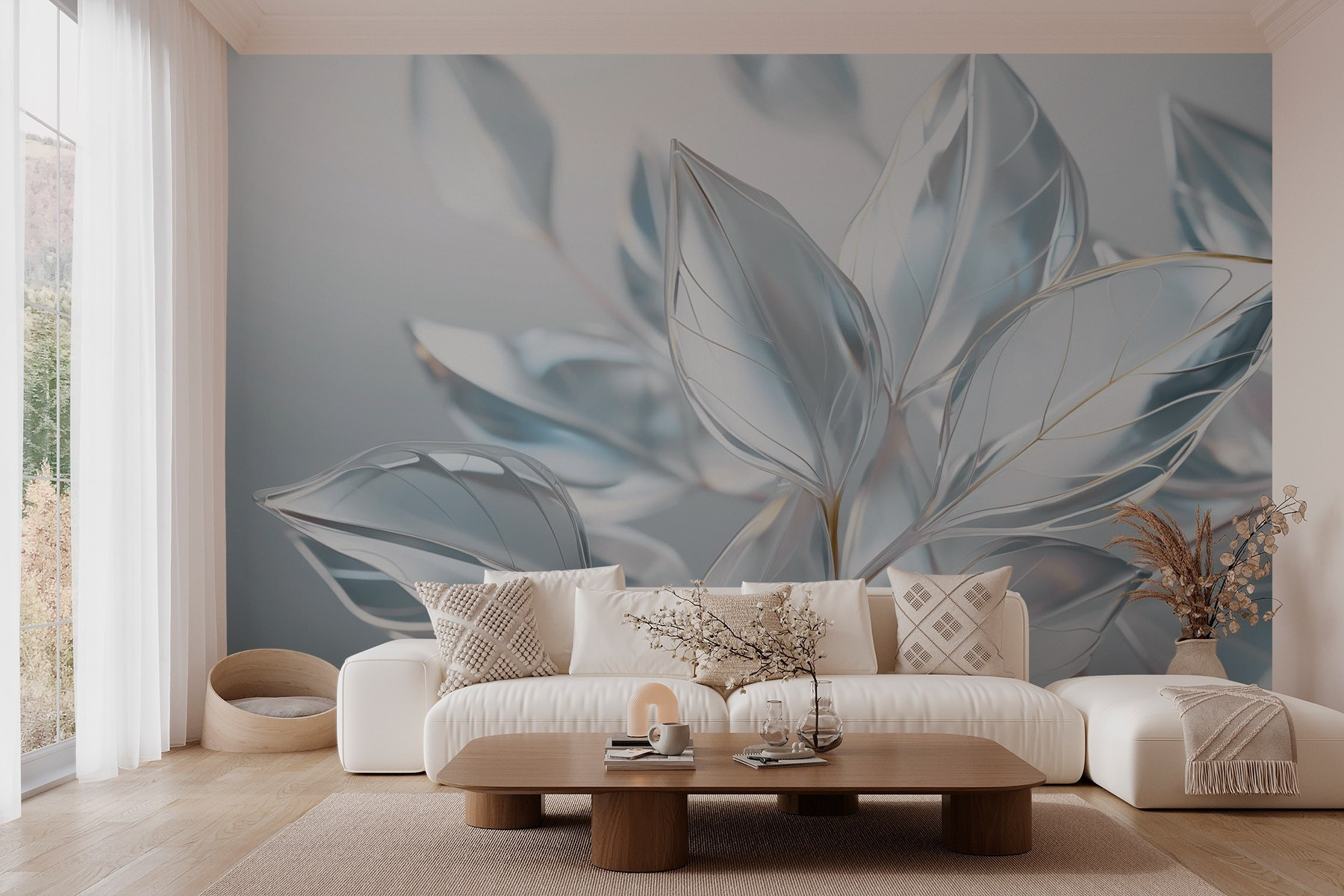 Przekształć swoją przestrzeń w spokojną ucieczkę dzięki fototapecie “Delicate Leaves in Soft Illumination”. Wyobraź sobie, że wchodzisz do pokoju, w którym liście wydają się delikatnie kołysać, łapiąc przebłyski miękkiego światła w miarę upływu dnia. To jak powiew świeżego powietrza na ścianie! Niezależnie od tego, czy jest to spokojna atmosfera dla przytulnego kącika do czytania, czy żywe tło dla przyjęć, ta fototapeta szepcze spokój. Idealna do dodania odrobiny natury bez konieczności utrzymywania prawdziwych roślin. Kto nie chciałby poczuć się, jakby spacerował po spokojnym lesie w zaciszu własnego domu?