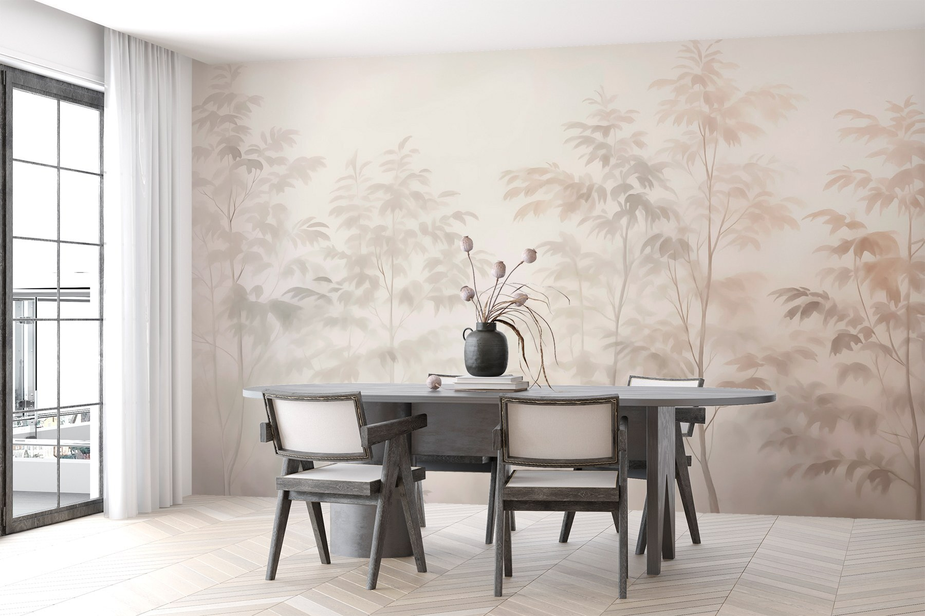 Przekształć pokój w senną ucieczkę z fototapetą ścienną Drzewa we mgle. Wyobraź sobie, że budzisz się w spokojnej leśnej scenerii, w której miękkie sylwetki drzew delikatnie zanikają w tajemniczej mgle. To tak, jakbyś miał odrobinę natury bezpośrednio na swoich ścianach, zapraszając spokojne wibracje, a może nawet filiżankę kawy lub herbaty w dłoni. Idealny na te spokojne chwile, kiedy chcesz po prostu odetchnąć. Niezależnie od tego, czy jest to przytulny kącik do czytania, czy spokojna sypialnia, ta fototapeta dodaje szept spokoju. To tak, jakby twoja ściana zdecydowała się na spacer we mgle – kto by tego nie pokochał?