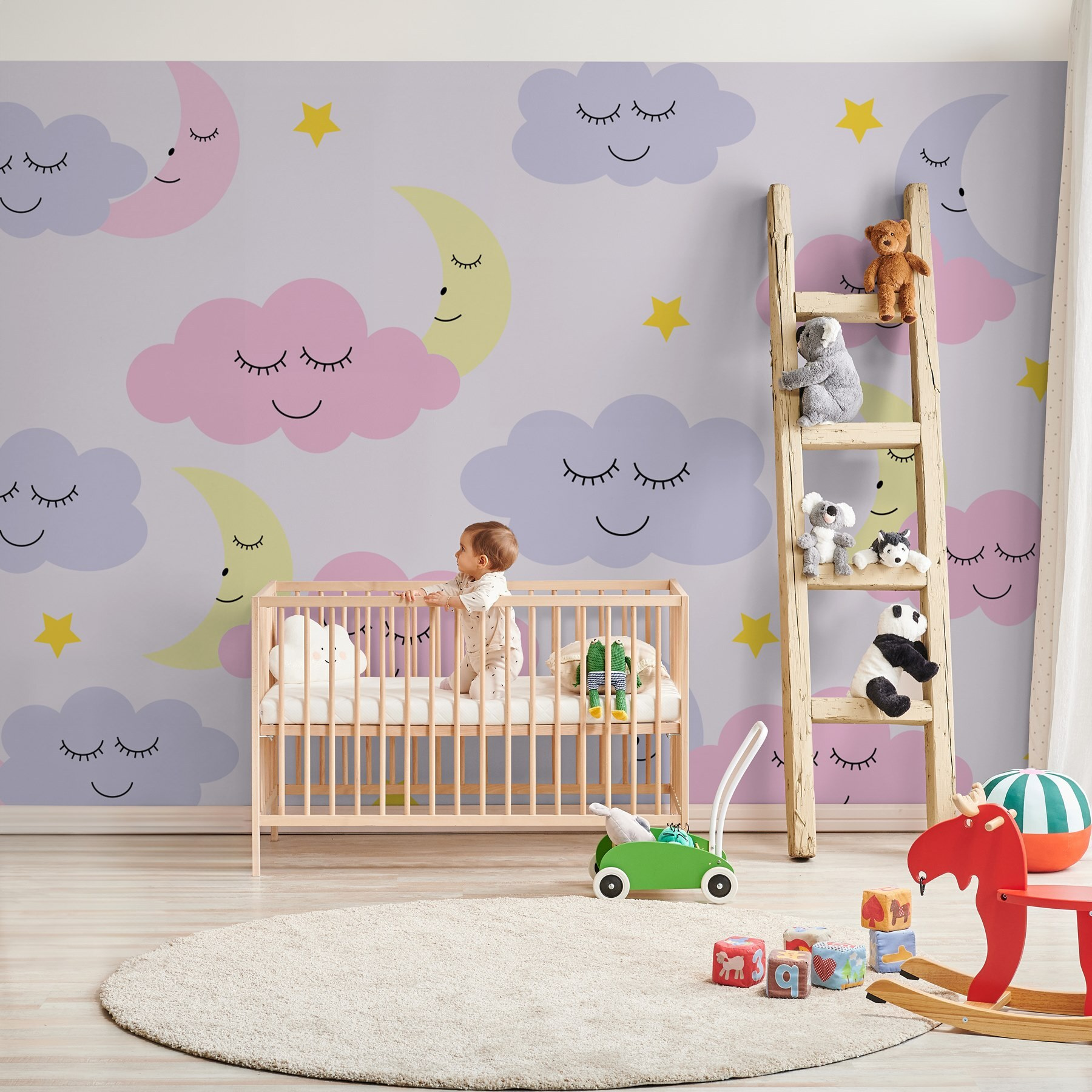 Przekształć przestrzeń każdego malucha w senne sanktuarium dzięki tej uroczej fototapecie przedstawiającej radosne chmury, zabawne gwiazdy i śpiące księżyce. To tak, jakby nocne niebo przeszło radosną metamorfozę! Wyobraź sobie uśmiechy podczas opowiadania bajek, gdy dzieci leżą pod puszystymi różowymi i fioletowymi chmurami, śniąc słodkie sny. Każdy element jest jak ciepły uścisk, zachęcający do wyobraźni i zachwytu. Idealny do pokoju dziecięcego lub pokoju zabaw, to nie tylko dekoracja; to przytulna ucieczka, w której marzenia nabierają rozpędu i zaczynają się przygody. Kto nie chciałby odpłynąć w tej pięknej scenerii?