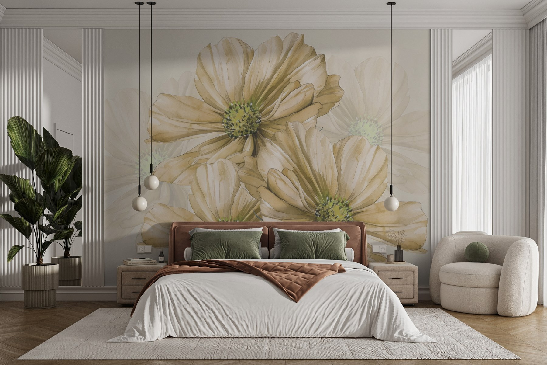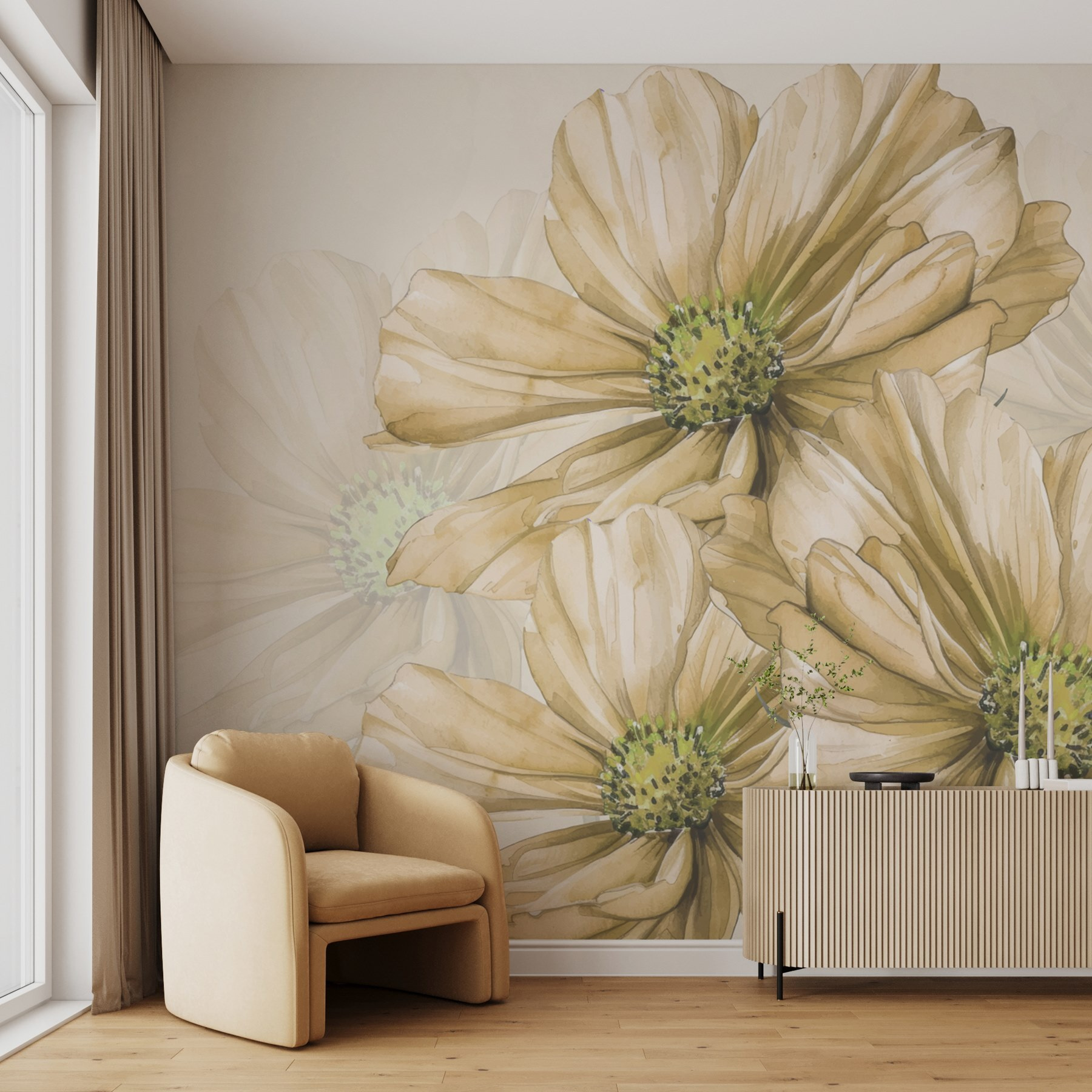 Przekształć dowolną przestrzeń w spokojne miejsce dzięki tej fototapecie ściennej z urzekającą grupą kwiatów. Wyobraź sobie te delikatne kwiaty z ich uroczymi zielonymi centrami delikatnie kołyszącymi się na wietrze – to tak, jakbyś miał świeży ogród w swoim domu. Idealna dla miłośników przyrody lub każdego, kto chce odrobiny spokoju, ta akwarela przenosi cię w słoneczne dni i ciepłe wibracje. Wyobraź sobie popijanie herbaty podczas wpatrywania się w tę fototapetę, pozwalając wyobraźni na spacer po polach marzeń. To coś więcej niż dekoracja, to zaproszenie do relaksu i oddechu. Przyjmij to piękno i pozwól mu rozjaśnić swój dzień.