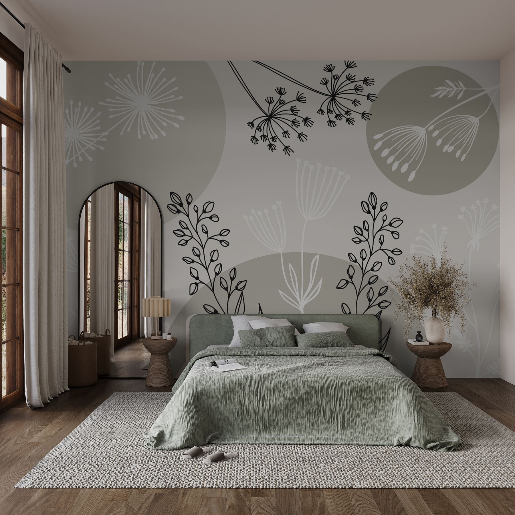 Dodaj odrobinę natury do swoich ścian dzięki tej fototapecie ściennej z pięknymi kwiatami i roślinami, wykonanymi w pięknym akwarelowym stylu. Wyobraź sobie, że każdego dnia budzisz się w otoczeniu miękkiej zieleni i delikatnych kwiatów, które wprowadzają lekki i przewiewny nastrój. Idealny do przytulnego salonu, uspokajającej sypialni, a nawet jasnego biura. To jak posiadanie ogrodu, który nigdy nie więdnie i nie wymaga podlewania. Przyjaciele wejdą do środka i natychmiast poczują tę pogodną atmosferę. Ponadto jest to świetny sposób na wyrażenie swojej miłości do wszystkiego, co botaniczne, bez konieczności posiadania pełnego ogrodu. Przekształć swoje ściany w uważny azyl, który rozkwita osobowością!