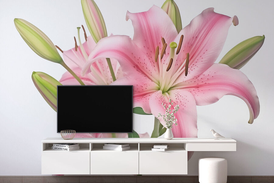 Odmień swoją przestrzeń dzięki zachwycającej fototapecie ściennej “Różowa lilia z pąkami”. Wyobraź sobie, że wchodzisz do pokoju, w którym czujesz się świeżo i żywo, a każdy płatek szepcze opowieści o wiośnie. Miękkie różowe odcienie wprowadzają delikatne ciepło, idealne do rozjaśnienia przytulnego kącika lub stworzenia odważnego akcentu na ścianie. To jak posiadanie wymarzonego ogrodu w domu, bez kichania i podlewania. Znajomi mogą się nawet zastanawiać, skąd u ciebie tyle artyzmu! Niezależnie od tego, czy jest to spokojne miejsce odosobnienia, czy tętniące życiem miejsce spotkań, ta fototapeta dodaje uroku, a kto nie kocha odrobiny kwiatowej magii?