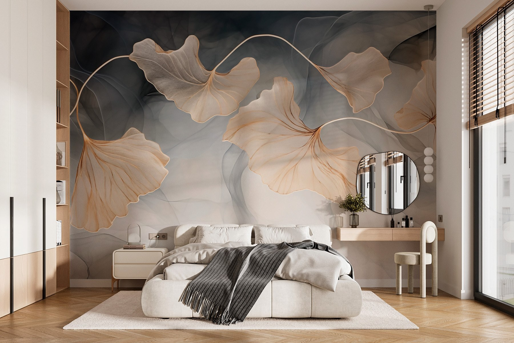 Odmień swoją przestrzeń dzięki fototapecie “Delicate Leaves in Soft Hues”, na której delikatne liście tańczą na tle uspokajających kolorów. Wyobraź sobie, że wchodzisz do pokoju, w którym czujesz się jak w spokojnym lesie, a delikatna paleta od razu uspokaja twój umysł. Te liście, z ich pięknymi krzywiznami, wydają się niemal kołysać na lekkim wietrze. Idealna do przytulnego kącika do czytania lub cichego kącika, ta fototapeta zaprasza do wzięcia oddechu i relaksu. Wyobraź to sobie – popijając herbatę, otoczony łaską natury i czując, że świat jest odrobinę milszy. Prosty akcent, który szepcze elegancję!
