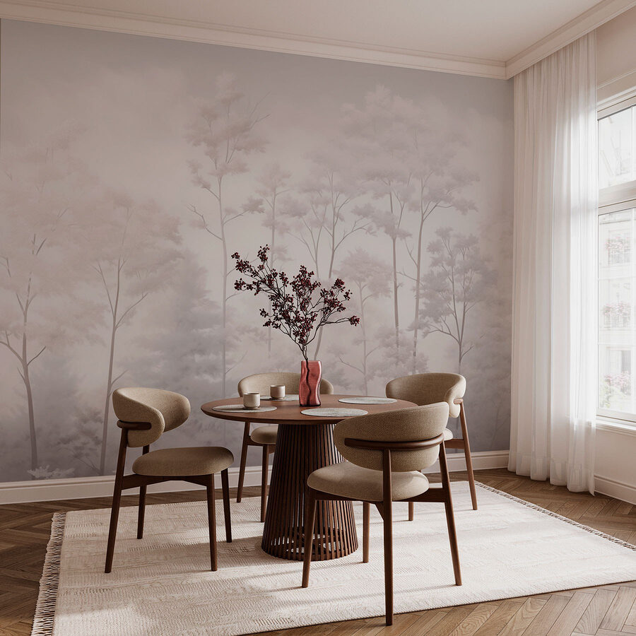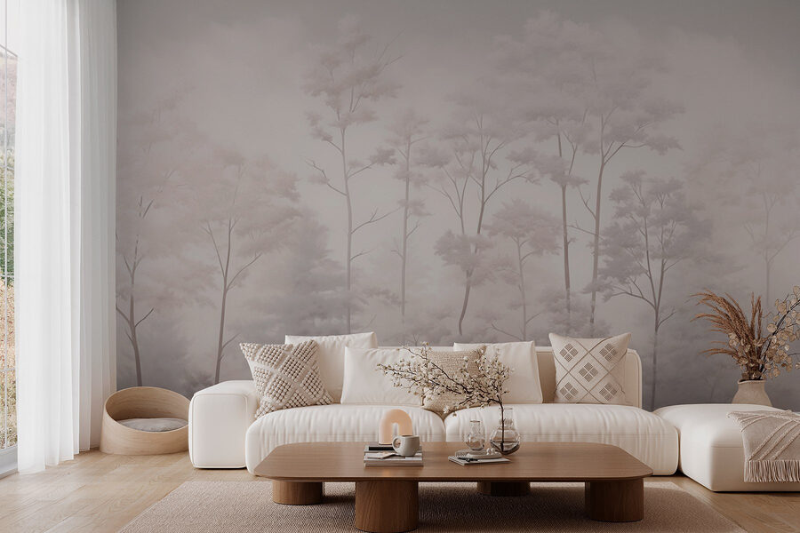 Odmień swoją przestrzeń dzięki spokojnemu urokowi tej fototapety ściennej przedstawiającej grupę drzew spowitych delikatną mgłą. Wyobraź sobie, że wchodzisz do sennego lasu za każdym razem, gdy przechodzisz obok. Delikatne odcienie i mglista atmosfera tworzą uspokajający nastrój – idealny do relaksu po długim dniu lub dodania odrobiny natury do domu. To tak, jakby mieć spokojną ucieczkę bezpośrednio na ścianie. Dodatkowo, jest to świetny początek rozmowy! Znajomi będą zachwyceni Twoim wyjątkowym wyborem dekoracji. Kto by pomyślał, że kilka drzew może być tak urzekające?